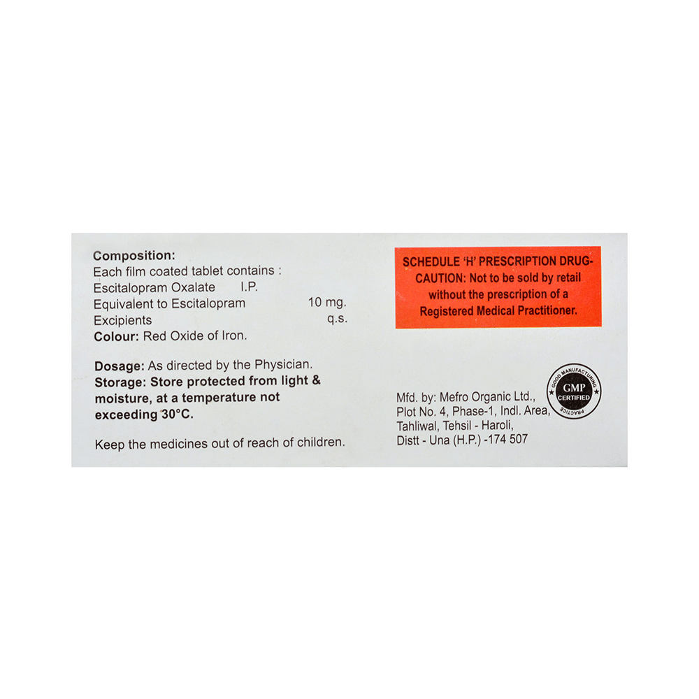 Salt Composition: Escitalopram Oxalate (10mg)