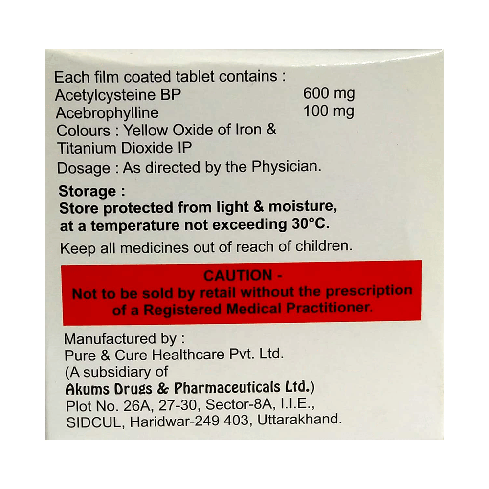 Salt Composition: Acebrophylline (100mg) + Acetylcysteine (600mg)