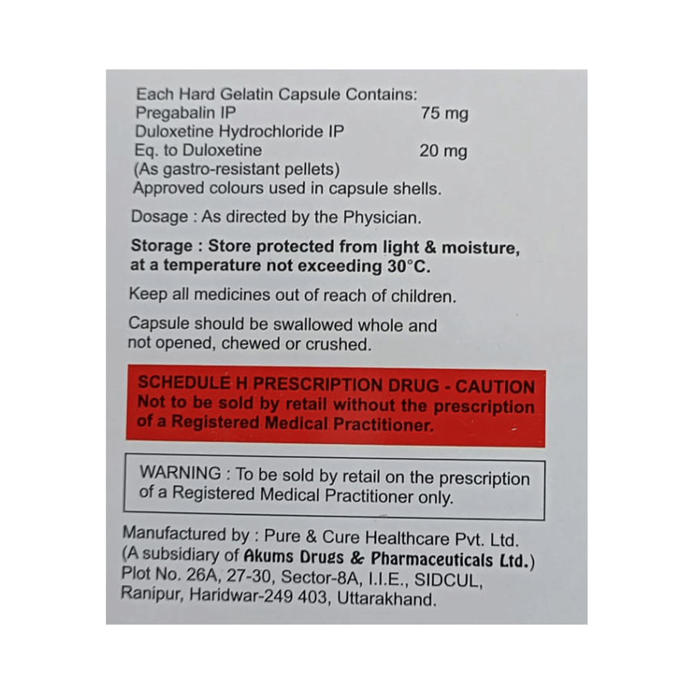 Salt Composition: Pregabalin (75mg) + Duloxetine (20mg)