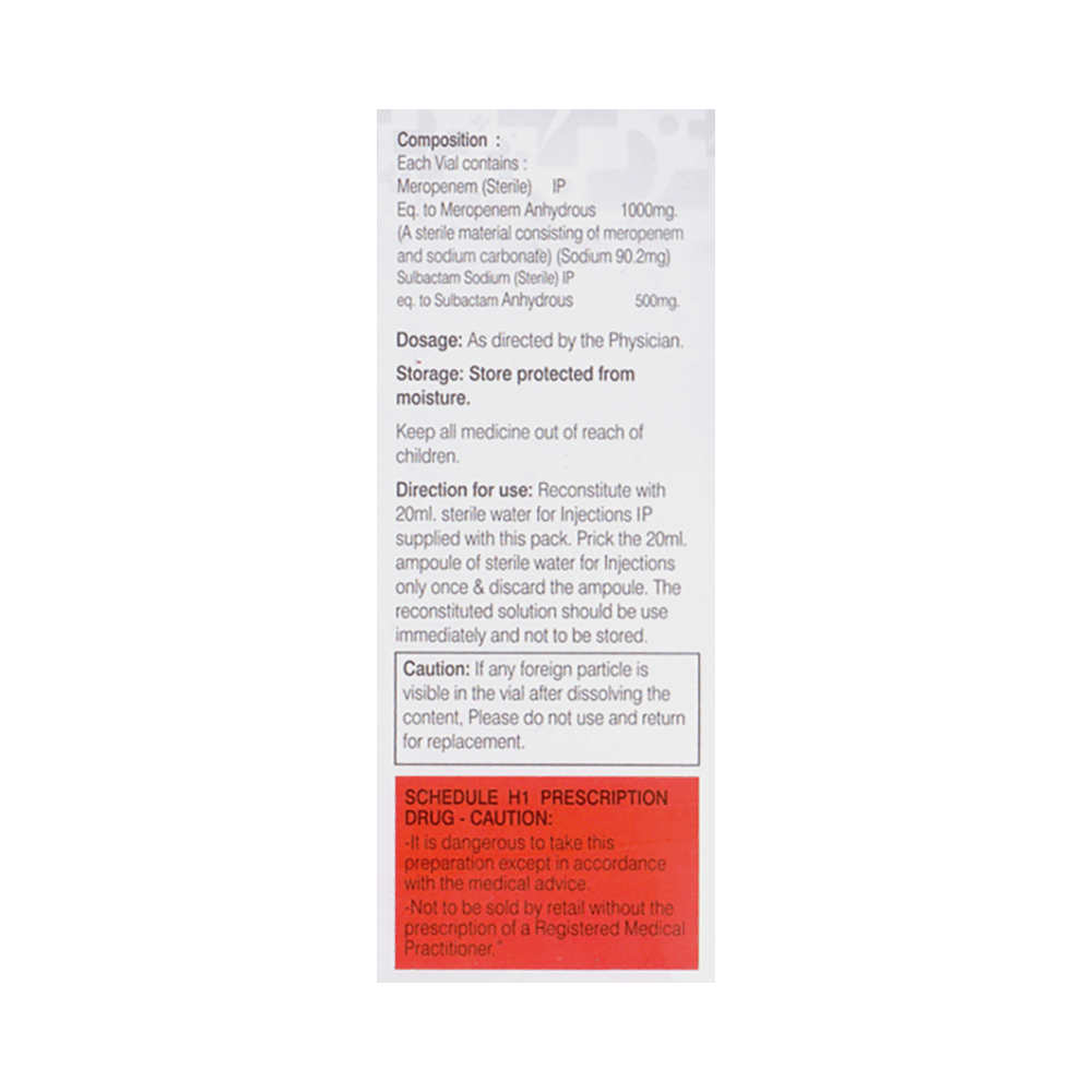 Salt Composition: Meropenem (1000mg) + Sulbactam (500mg)