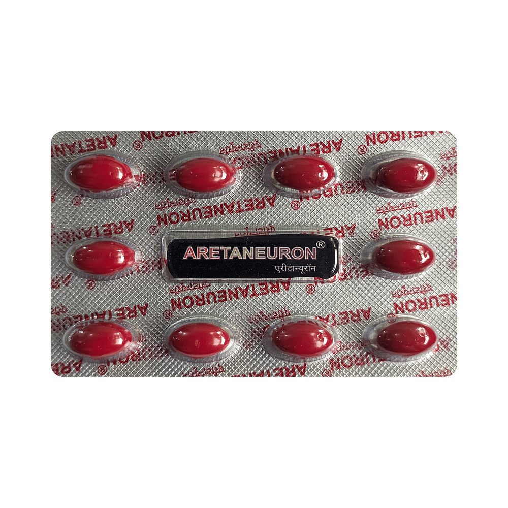 Aretaneuron Softgel Capsule is a nutritional supplement. It is taken to treat conditions caused by deficiency of vitamins, minerals, and other nutrients in the body. It also ensures proper growth and functioning of the body. Aretaneuron Softgel Capsule may be taken with or without food. Take it in the dose and duration advised by the doctor. To get the most benefit, take it regularly at the same time each day and continue taking it until your prescription is finished. Do not take it more than or longer than prescribed by the doctor, as that may cause harmful effects.It is generally safe medicine with little or no side effects. However, if you experience any symptom which you think is caused by the medicine, let your doctor know. They may be able to suggest ways to reduce or prevent the side effects.Before taking this medicine, it is important to let your doctor know if you have any preexisting medical conditions or if you are taking any other medications. This will ensure your safety to use this medicine. Pregnant and breastfeeding should consult their doctor before taking this medicine to make sure it is safe for them.