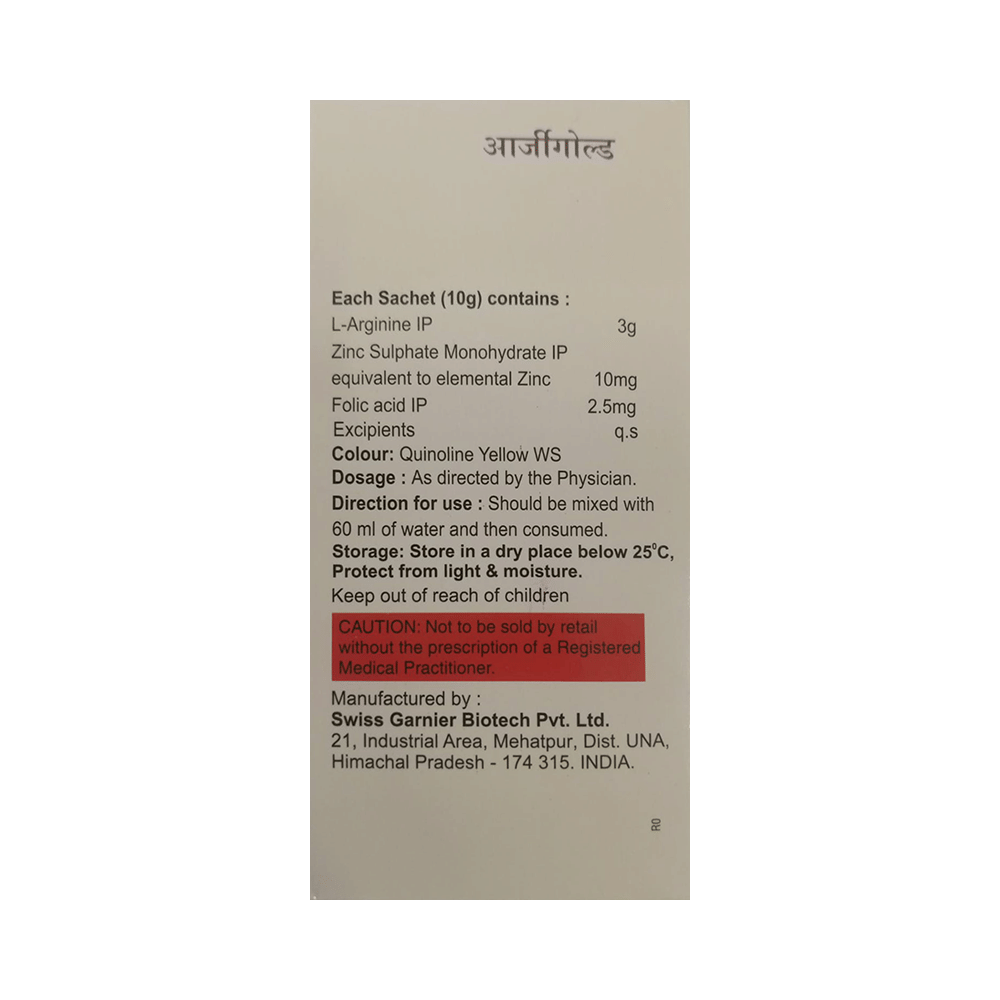 Take this medicine in the dose and duration as advised by your doctor. Check the label for directions before use. Empty the granules in a glass of water/milk, stir it and consume immediately. Argigold Sachet may be taken with or without food, but it is better to take it at a fixed time.