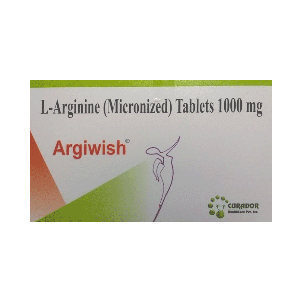 Argiwish Tablet is a non-essential amino acid. It is used in the treatment of nutritional deficiencies. It helps to improve vascular and heart health. Additionally, it promotes muscle growth, thus can also be used for bodybuilding. Argiwish Tablet should be taken in the dose and duration as advised by the doctor. An overdose of this medicine may have harmful effects on your health. It can be taken with or without food.This medicine is usually safe, however, it may cause nausea, bloating, and diarrhea, etc. as side effects. Some people may also experience low blood pressure after taking the medicine.Patients with a history of acute heart disease should take this medicine only when prescribed by the doctor. During the course of the treatment, your doctor may suggest some diagnostic and laboratory (blood and urine) tests to know the effects of the medicine on the body.