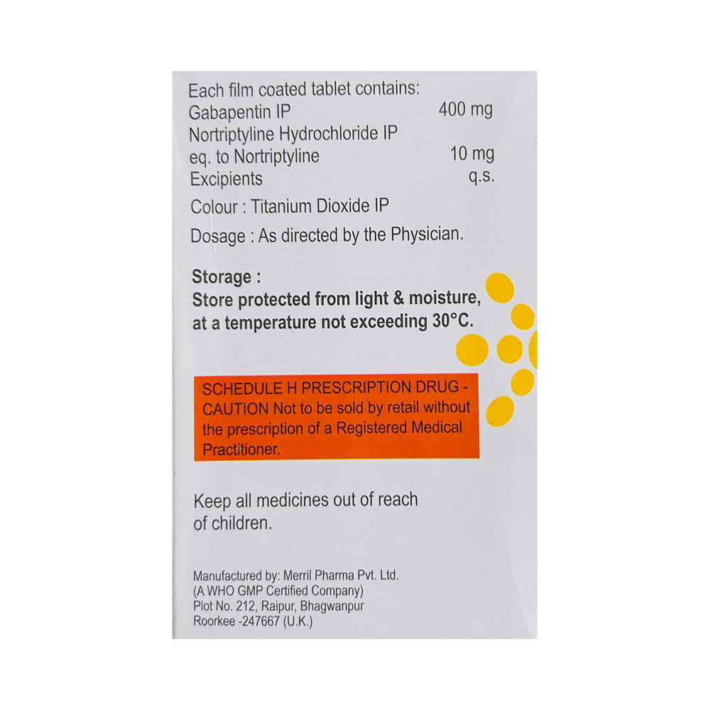 Salt Composition: Gabapentin (400mg) + Nortriptyline (10mg)