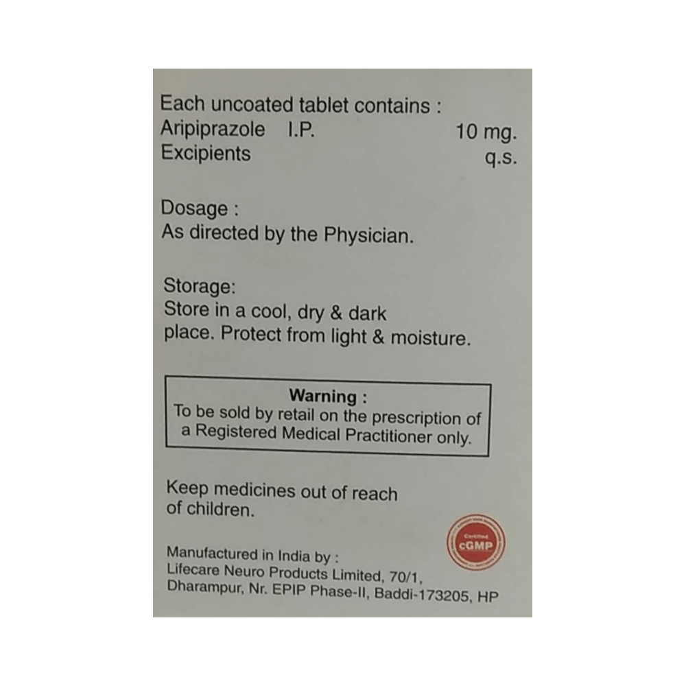 In ManiaMania means extremely excited or elevated mood. ARIjoy 10 Tablet helps calm the mood and relax the nerves. This stabilises the mood and prevents the symptoms of mania from recurring again. Taking ARIjoy 10 Tablet will ensure that you have a better social life and are able to do daily activities more comfortably.In SchizophreniaSchizophrenia is a mental disorder in which a person’s thinking ability, feelings and behavior become abnormal. ARIjoy 10 Tablet helps restore the chemical imbalances in the brain that are responsible for such changes. It improves thoughts, behavior and enhances the quality of life.show moreshow less