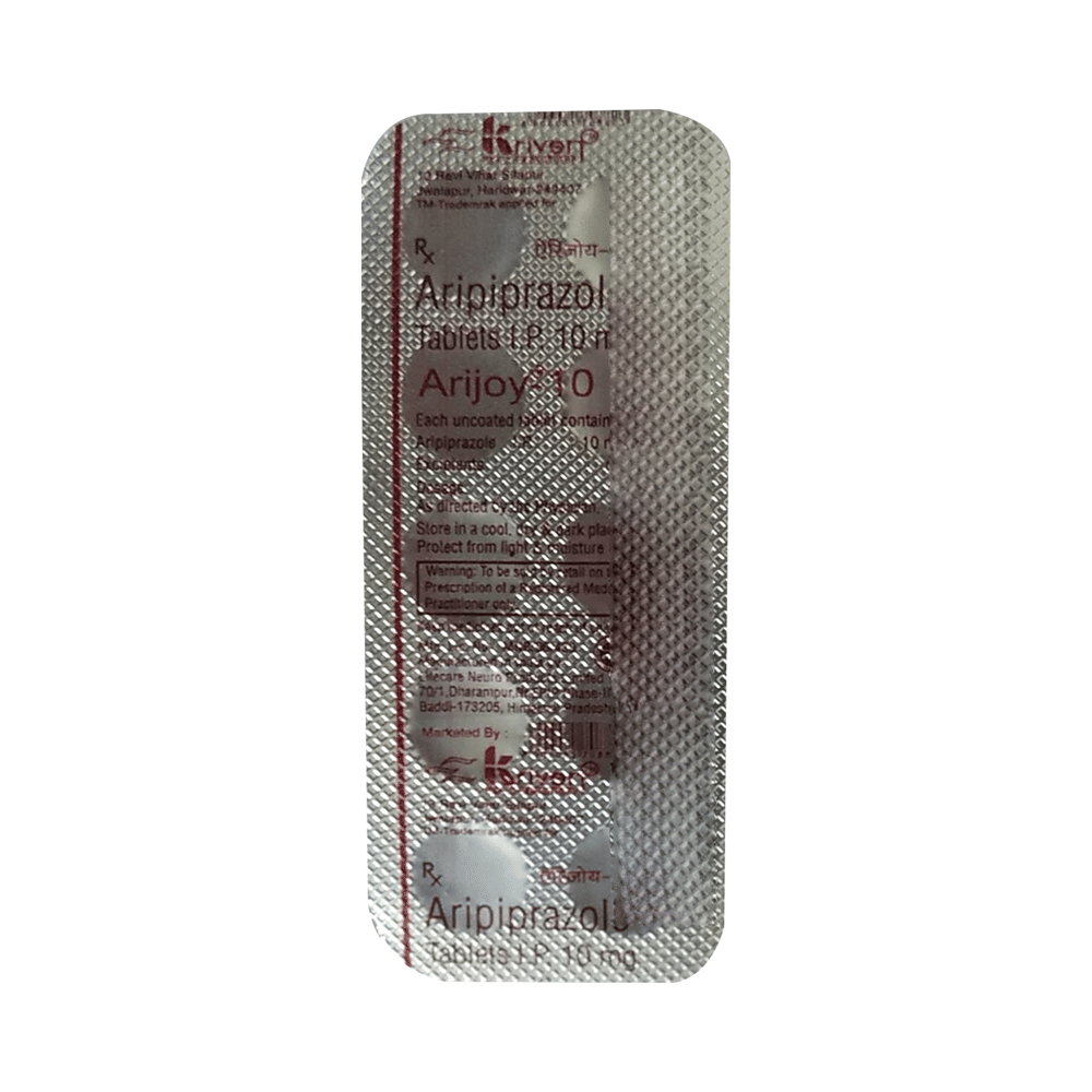 ARIjoy 10 Tablet is an atypical antipsychotic. It works by changing the action of certain chemical messengers in the brain that affect thoughts.