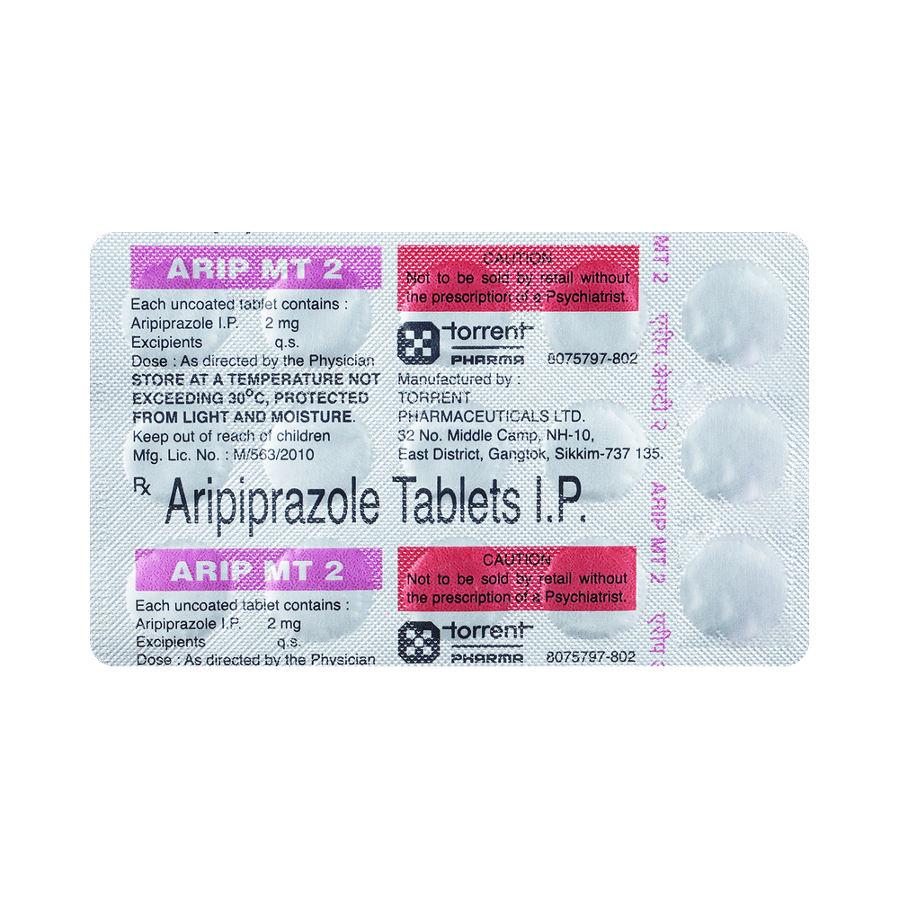 In ManiaMania means extremely excited or elevated mood. Arip MT 2 Tablet helps calm the mood and relax the nerves. This stabilises the mood and prevents the symptoms of mania from recurring again. Taking Arip MT 2 Tablet will ensure that you have a better social life and are able to do daily activities more comfortably.In SchizophreniaSchizophrenia is a mental disorder in which a person’s thinking ability, feelings and behavior become abnormal. Arip MT 2 Tablet helps restore the chemical imbalances in the brain that are responsible for such changes. It improves thoughts, behavior and enhances the quality of life.show moreshow less
