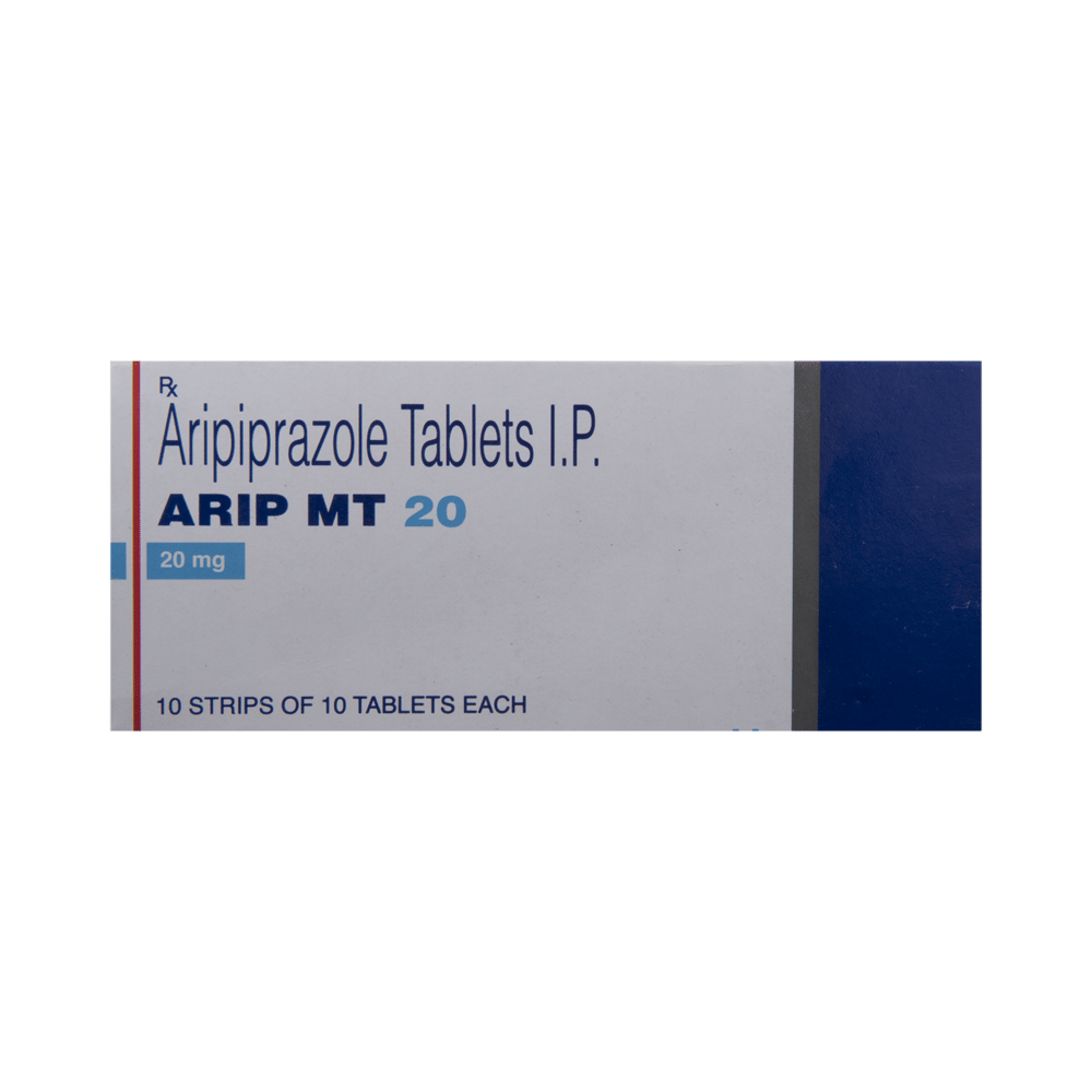In ManiaMania means extremely excited or elevated mood. Arip MT 20 Tablet helps calm the mood and relax the nerves. This stabilises the mood and prevents the symptoms of mania from recurring again. Taking Arip MT 20 Tablet will ensure that you have a better social life and are able to do daily activities more comfortably.In SchizophreniaSchizophrenia is a mental disorder in which a person’s thinking ability, feelings and behavior become abnormal. Arip MT 20 Tablet helps restore the chemical imbalances in the brain that are responsible for such changes. It improves thoughts, behavior and enhances the quality of life.show moreshow less