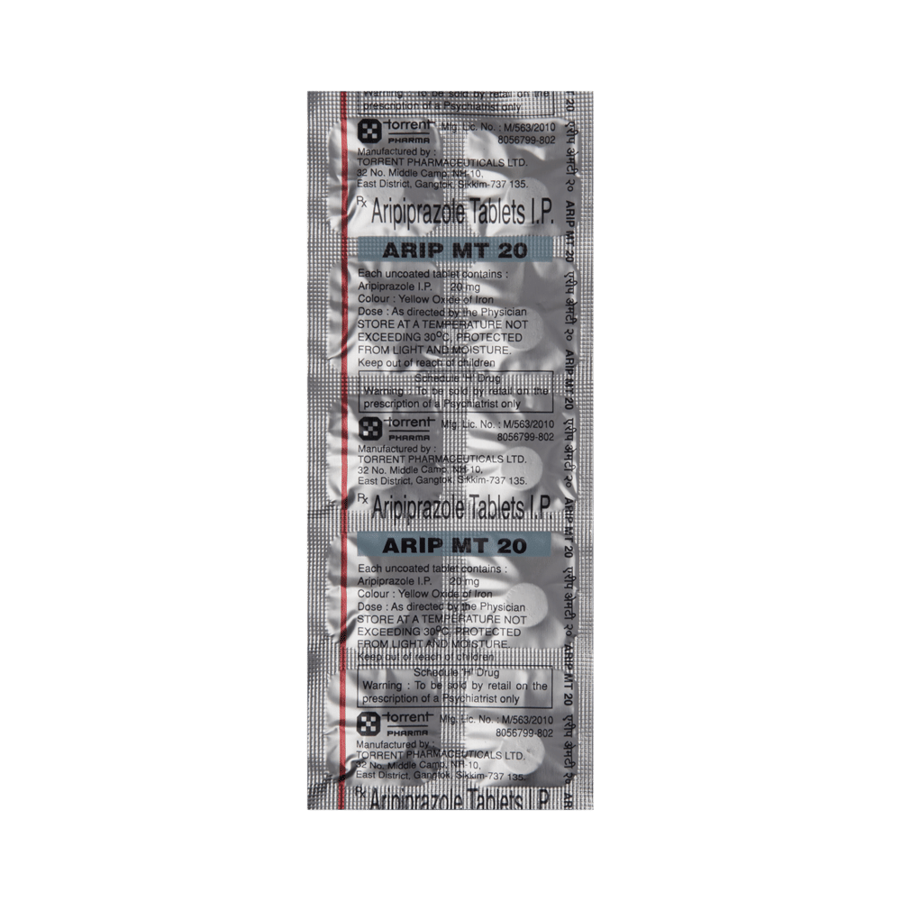 Take this medicine in the dose and duration as advised by your doctor. Swallow it as a whole. Do not chew, crush or break it. Arip MT 20 Tablet may be taken with or without food, but it is better to take it at a fixed time.