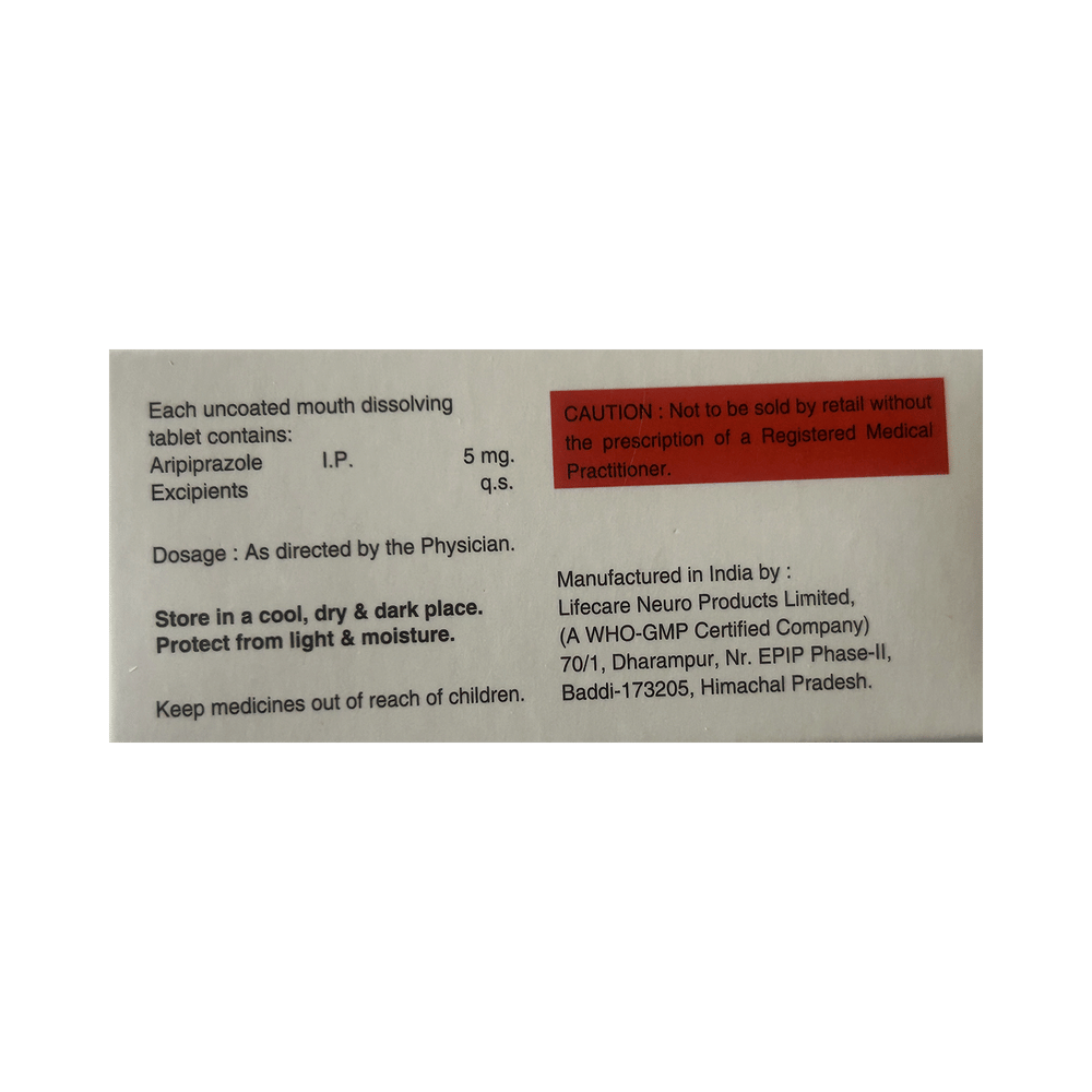 Arpimost 5 Tablet MD is an atypical antipsychotic. It works by changing the action of certain chemical messengers in the brain that affect thoughts.