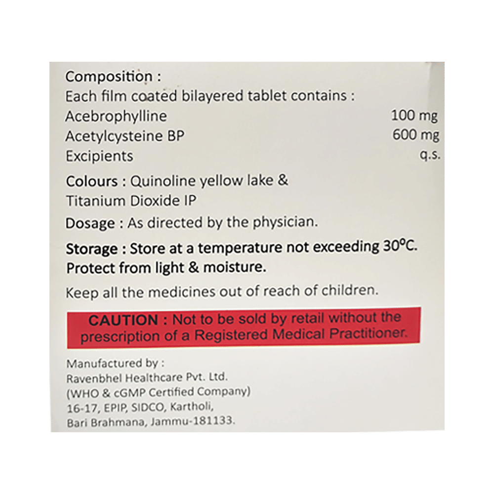 Salt Composition: Acebrophylline (100mg) + Acetylcysteine (600mg)