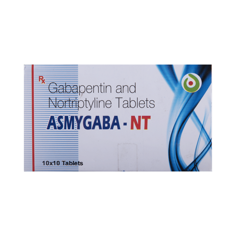 Asmygaba-NT Tablet is a combination medicine used for the treatment of neuropathic pain. This medicine decreases the pain by stopping the movement of pain signals to the brain. Asmygaba-NT Tablet is taken by mouth, with or without food and preferably at night. It is advised to take it at a fixed time each day to maintain a consistent level of medicine in the blood. In case you miss a dose of this medicine, take it as soon as you remember. Finish the full course of treatment even if you feel better. It is important not to stop taking this medicine suddenly without talking to the doctor as it may worsen your symptoms.Some common side effects of this medicine constipation, difficulty in urination, weight gain, tiredness, and dryness in mouth. It may also cause dizziness and sleepiness, so do not drive or do anything that requires mental focus until you know how this medicine affects you. This medicine may cause weight gain and to control it, you should exercise regularly and take a balanced diet. Remember to inform the doctor if you develop any unusual changes in mood as this medicine may lead to suicidal thoughts.Before taking this medicine let your doctor know if you suffer from kidney or liver disease. Your doctor should also know about all other medicines you are taking as many of these may make this medicine less effective or change the way it works. Inform your doctor if you are pregnant, planning pregnancy or breastfeeding.