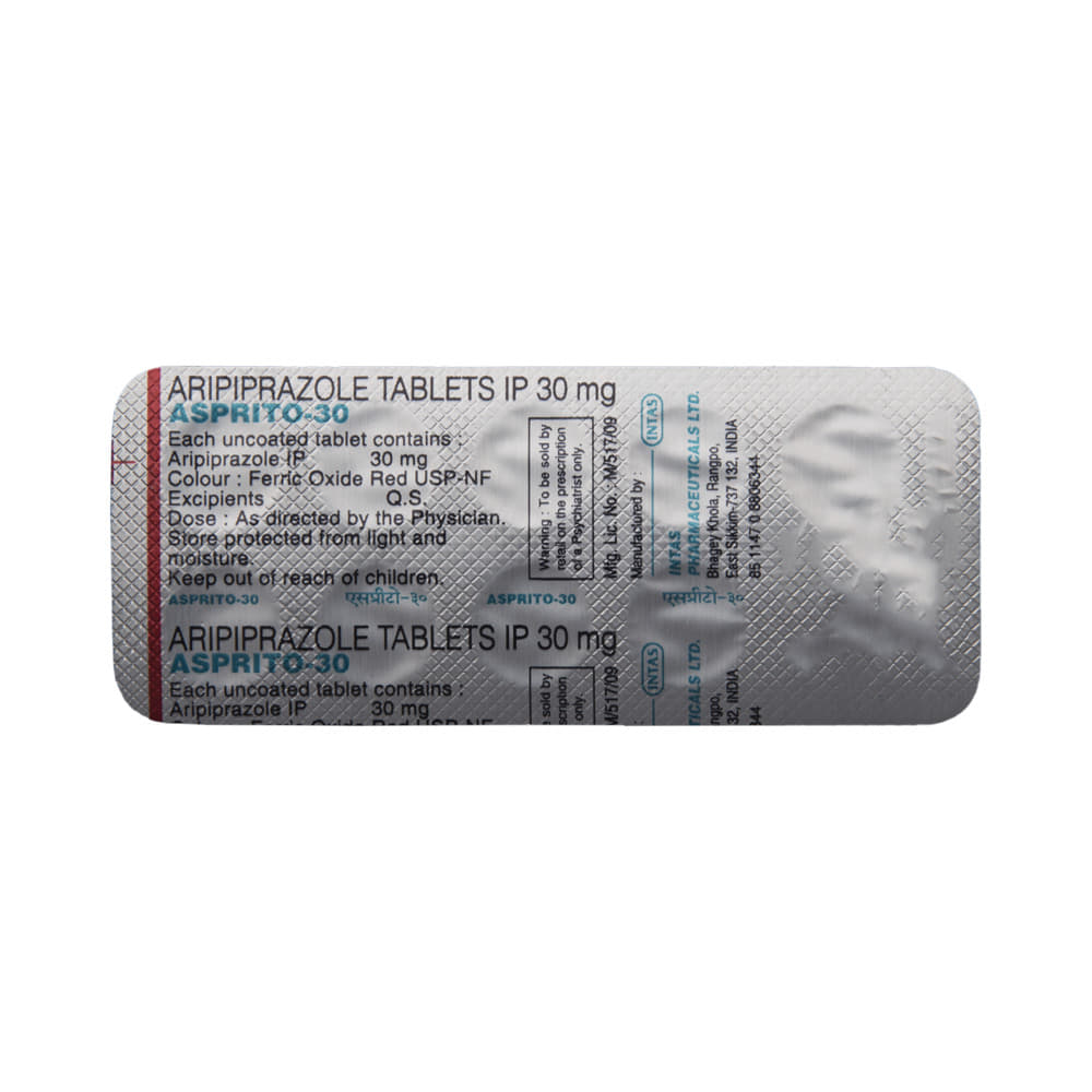 Asprito 30 Tablet is an atypical antipsychotic. It works by changing the action of certain chemical messengers in the brain that affect thoughts.