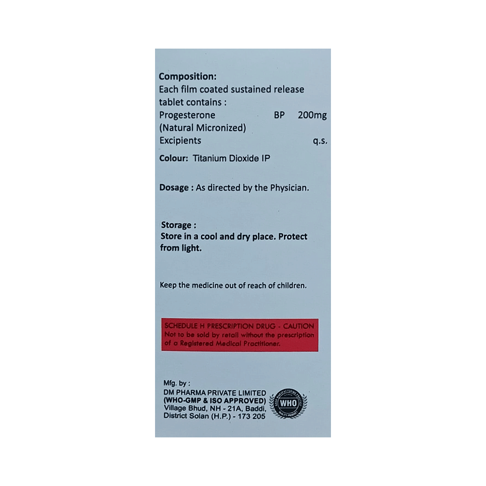 In Female infertilityAsprogest 200 SR Tablet contains progesterone, a female hormone that is important in the regulation of ovulation and menstruation. It is used to cause menstrual periods in women who have not reached menopause but are not having periods due to a lack of natural progesterone in the body. Progesterone helps to prepare the uterus for pregnancy by causing the uterus lining (endometrium) to thicken. This increases the chance of a successful pregnancy. You should use the medicine as prescribed for it to be effective. You may be asked to continue with this treatment for a period after becoming pregnant.In Hormone replacement therapyHormone Placement Therapy (HRT) is a treatment to relieve symptoms of menopause such as hot flushes, night sweats, mood swings, vaginal dryness and reduced sex drive. Since menopause can last for several years, this treatment can make a big improvement to your daily life and mood. You should use this medicine as it is prescribed, and for as long as it is prescribed by your doctor.show moreshow less