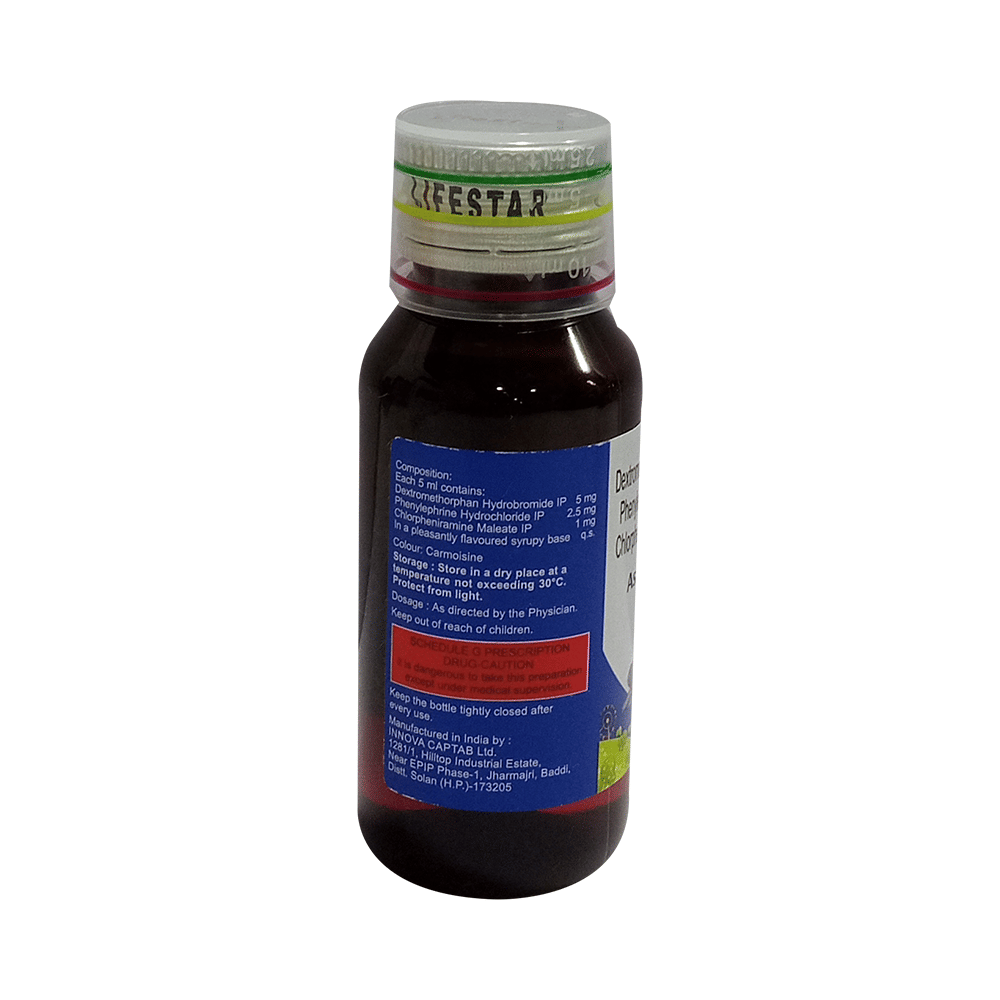 Salt Composition: Phenylephrine (2.5mg/5ml) + Chlorpheniramine Maleate (1mg/5ml) + Dextromethorphan Hydrobromide (5mg/5ml)