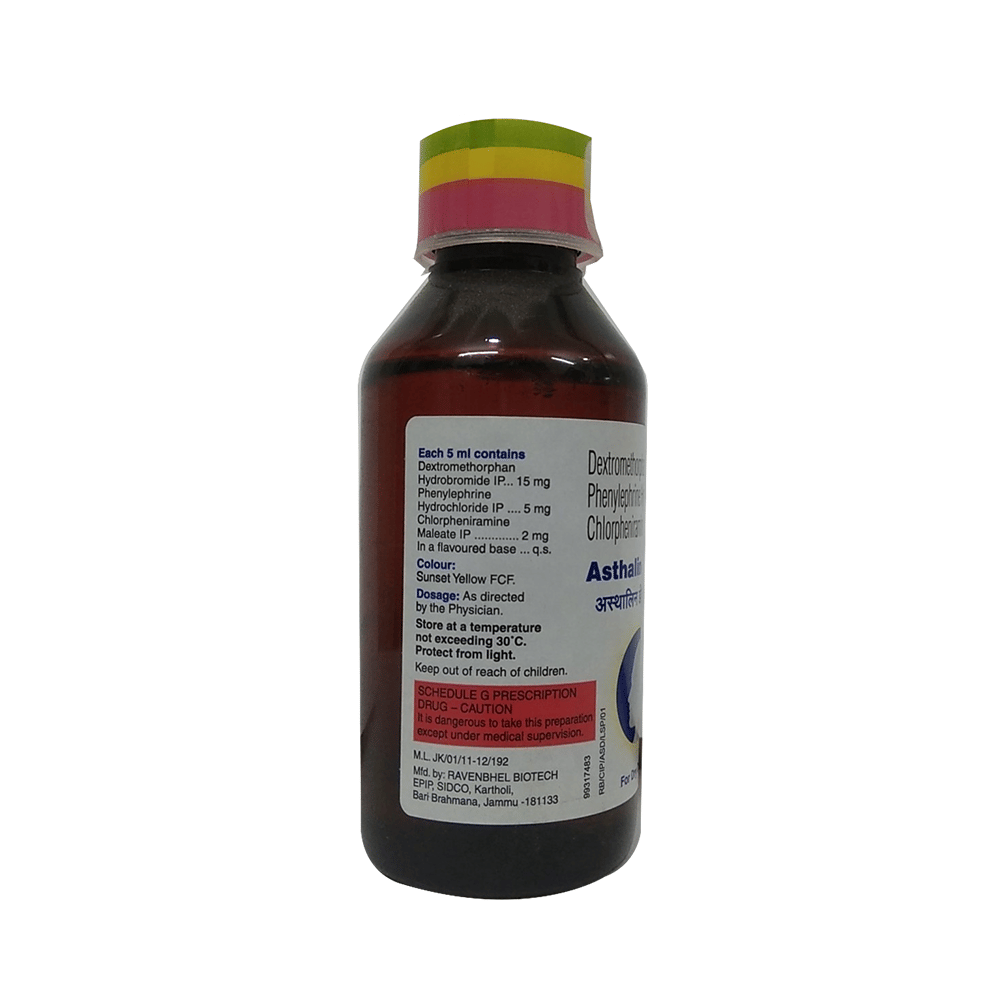 asthaLIN DX Syrup is a combination of three medicines: Phenylephrine, Chlorpheniramine Maleate, and Dextromethorphan Hydrobromide. Phenylephrine is a decongestant which narrows the small blood vessels providing relief from congestion or stuffiness in the nose. Chlorpheniramine Maleate is an antiallergic which relieves allergy symptoms like runny nose, watery eyes and sneezing. Dextromethorphan Hydrobromide is a cough suppressant which relieves cough by reducing the activity of cough center in the brain.