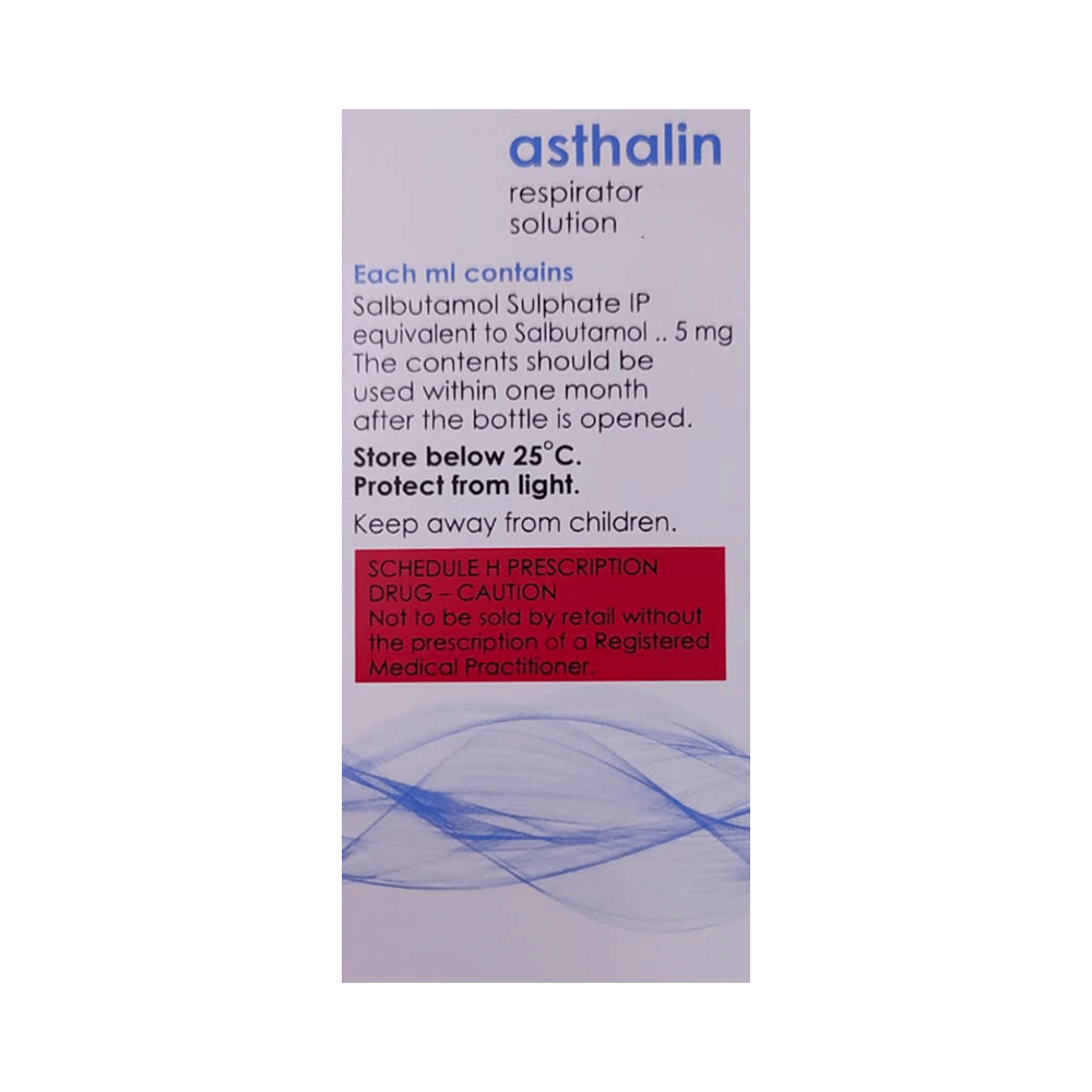 ASTHAlin Respirator Solution belongs to a group of medicines called fast-acting bronchodilators or “relieversâ€. It’s used to treat the symptoms of asthma and chronic obstructive pulmonary diseases (COPD) such as coughing, wheezing, and breathlessness. ASTHAlin Respirator Solution is called "reliever" inhalers because they give you quick relief from breathing problems when you need it. In most cases, you will be given another inhaler to prevent your symptoms (a “preventerâ€) and you should use this regularly every day. ASTHAlin Respirator Solution works quickly and the effects can last several hours. You can use it at any time of day, but only use it when you notice symptoms, such as coughing, wheezing, shortness of breath, tightness in the chest or you know that you are going to do an activity that can cause breathlessness. When an asthma attack happens, you should take the number of puffs your doctor recommends. There are several types of inhaler devices so make sure you know how to use your inhaler correctly, otherwise, it may not work. Do not stop using this medicine unless your doctor tells you to. If you stop, your breathing problems could get worse.ASTHAlin Respirator Solution is generally safe and effective but may cause some common side effects which include tremors, headaches, palpitations, viral respiratory tract infections, and cough. These side effects are not often dangerous and should gradually improve as your body gets used to this medicine. There are other rare, side effects and you should call your doctor straight away if you get chest pain, a very bad headache, or very bad dizziness.Before using ASTHAlin Respirator Solution, you should tell your doctor if you have high blood pressure, an overactive thyroid gland, a history of heart problems, diabetes, or low levels of potassium in your blood to make sure it is safe. Also, make sure your doctor knows if you are pregnant or breast-feeding before taking this medicine. This medicine can make you feel dizzy or shaky, therefore, do not drive, use tools, or machinery until you feel better. Avoid smoking as it causes damage to your lungs and will make your condition worse.