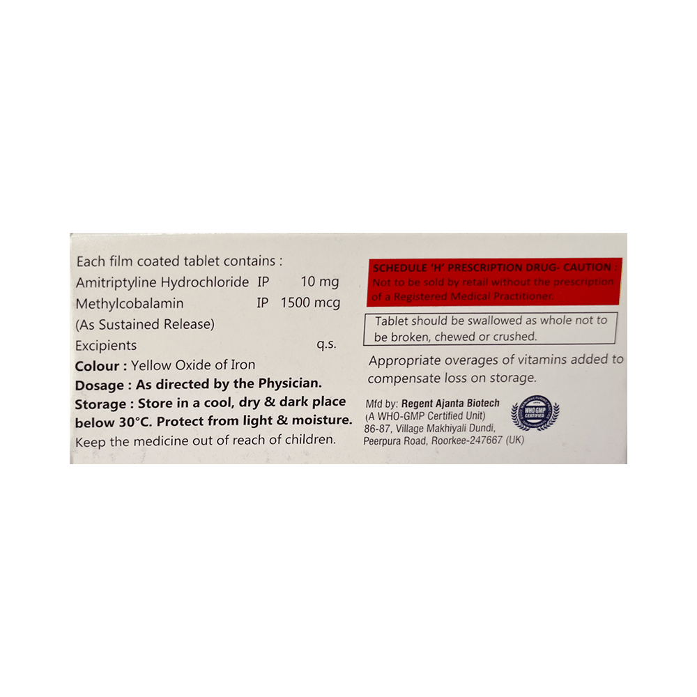 Salt Composition: Amitriptyline (10mg) + Methylcobalamin (1500mcg)