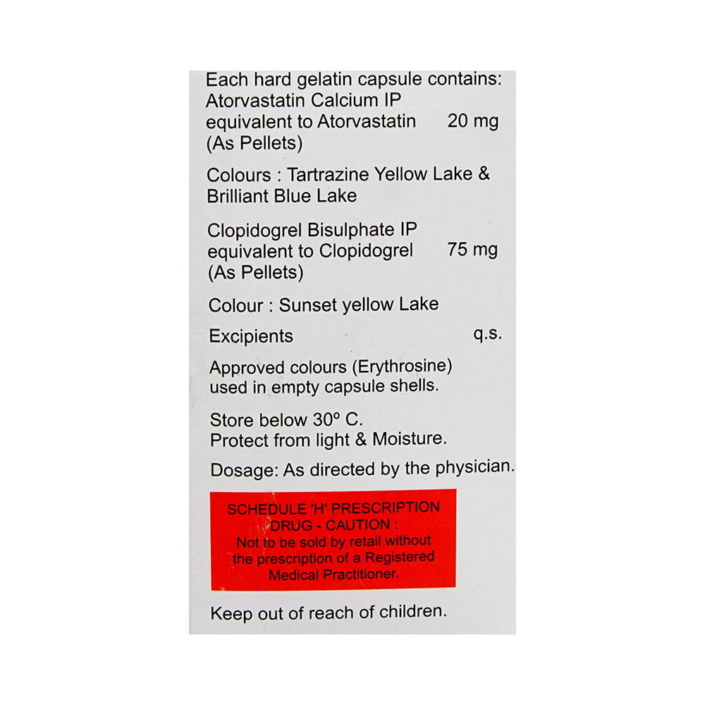 Salt Composition: Atorvastatin (20mg) + Clopidogrel (75mg)