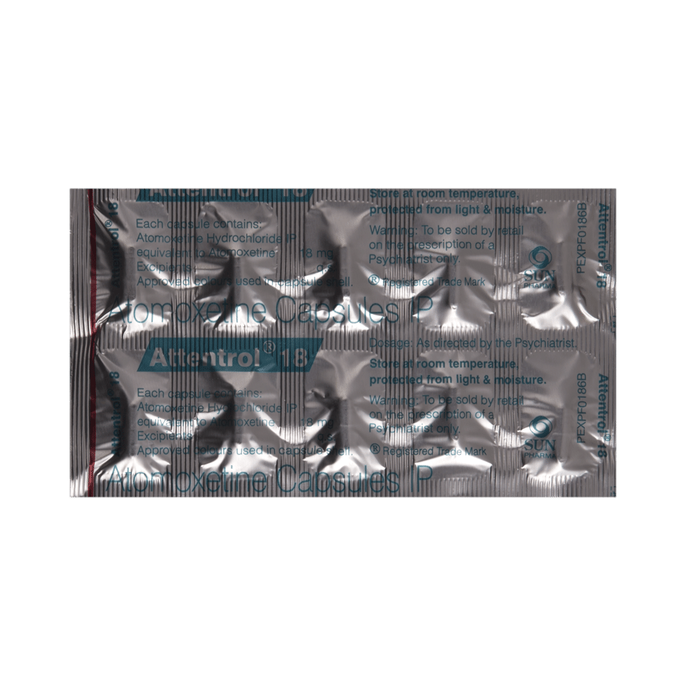 Attentrol 18 Capsule is a medicine used in the treatment of attention deficit hyperactivity disorder (a behavioral disorder in children marked by poor concentration, hyperactivity, and learning difficulties). It helps to improve attention span, concentration and reduces impulsive behavior. Attentrol 18 Capsule may be taken with or without food. It is advised to take this medicine at a fixed time each day to maintain a consistent level in the blood. If you miss any doses, take it as soon as you remember. Do not skip any doses and finish the full course of treatment even if you feel better. This medication mustn't be stopped suddenly as it may worsen your symptoms.Some common side effects of this medicine include headache, nausea, vomiting, decreased appetite, abdominal pain, increased heart rate, and high blood pressure. However, these side effects are temporary and usually resolve on their own in some time. Please consult your doctor if these do not subside or bother you. This medicine causes dizziness and sleepiness, so do not drive or do anything that requires mental focus until you know how this medicine affects you.Before taking Attentrol 18 Capsule, inform your doctor if you have any problems with your kidneys, heart, liver, or have a history of seizures (epilepsy or fits). Inform your doctor if you develop any unusual changes in mood or behavior, new or worsening depression, or if you have any suicidal thoughts. This medicine may increase your blood pressure, so it is better to monitor it regularly and consult your doctor if it is bothersome.