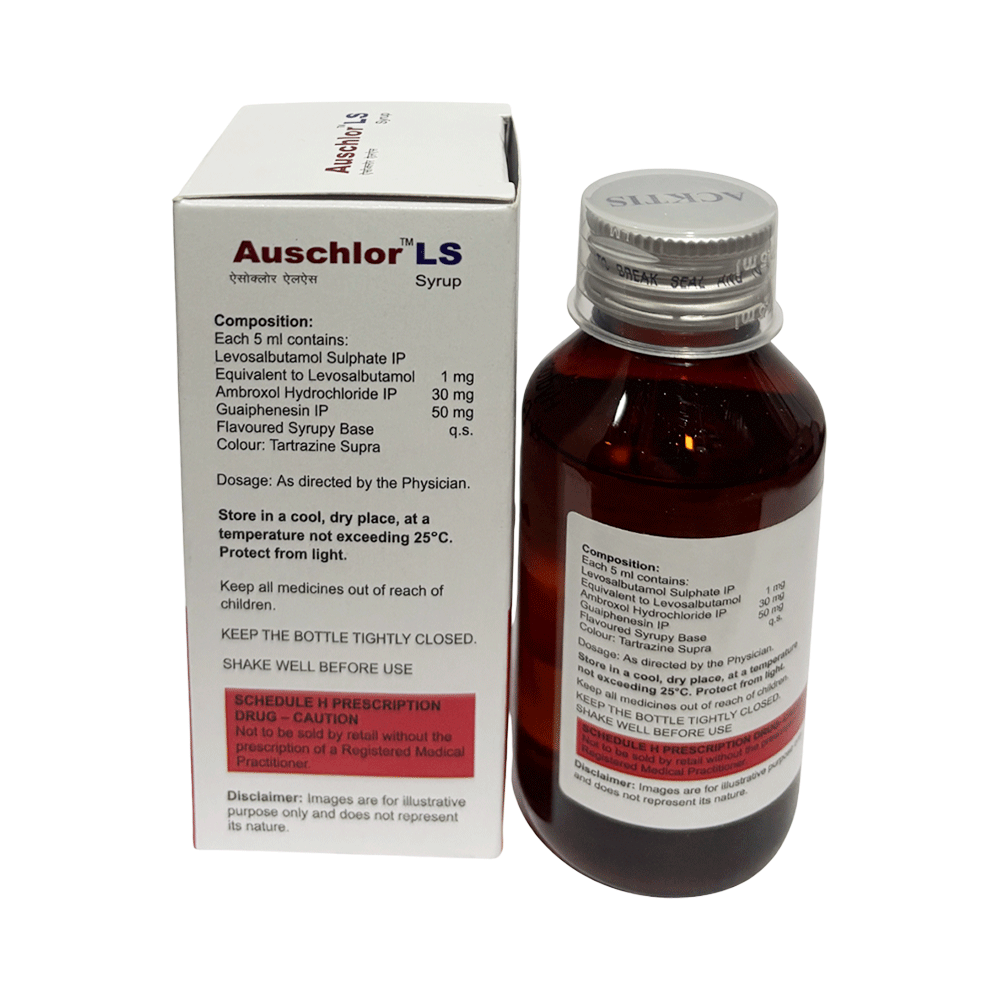 Auschlor LS Syrup Raspberry Sugar Free is a combination medicine used in the treatment of cough with mucus. It thins mucus in the nose, windpipe, and lungs, making it easier to cough out. It also provides relief from runny nose, sneezing, itching, and watery eyes. Auschlor LS Syrup Raspberry Sugar Free is taken with or without food in a dose and duration as advised by the doctor. The dose you are given will depend on your condition and how you respond to the medicine. You should keep taking this medicine for as long as your doctor recommends. If you stop treatment too early your symptoms may come back and your condition may worsen. Let your healthcare team know about all other medications you are taking as some may affect, or be affected by this medicine.The most common side effects are nausea, diarrhea, stomach pain, vomiting, muscle cramp, headache, skin rash, and increased heart rate. Most of these are temporary and usually resolve with time. Contact your doctor straight away if you are at all concerned about any of these side effects. This medicine can also cause sleepiness, so do not drive or do anything that requires mental focus until you know how this medicine affects you. Avoid drinking alcohol while taking this medicine as it can make sleepiness worse.Never support self-medication or recommend your medicine to another person. It is beneficial to have plenty of fluids while taking this medication. Before taking this medicine, you should tell your doctor if you are pregnant, planning pregnancy, or breastfeeding. You should also tell your doctor if you have any kidney or liver diseases so that your doctor can prescribe a suitable dose for you.
