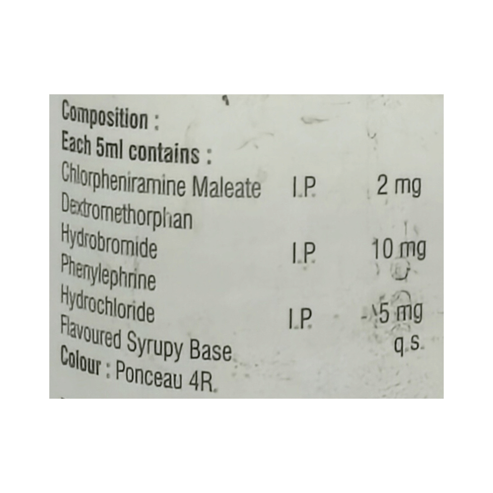 Salt Composition: Phenylephrine (5mg/5ml) + Chlorpheniramine Maleate (2mg/5ml) + Dextromethorphan Hydrobromide (10mg/5ml)