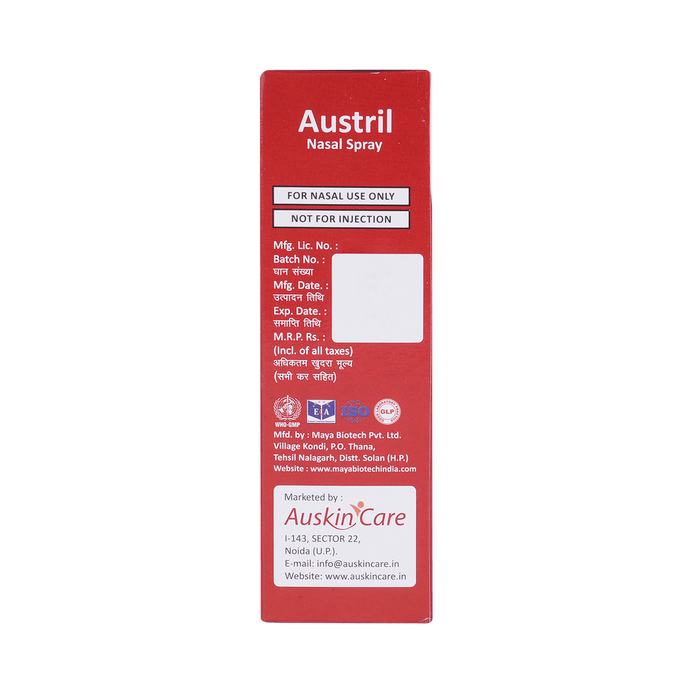 Austril Nasal Spray is a steroid medicine. It works by blocking the production of certain chemical messengers that cause inflammation in the inside of the nose.