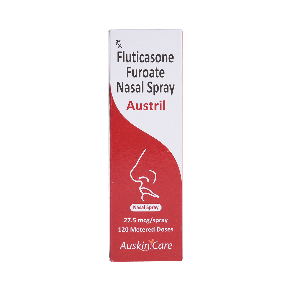 In Treatment of Sneezing and runny nose due to allergiesAustril Nasal Spray belongs to a group of medicines called corticosteroids. When it is sprayed into your nose it will reduce swelling and irritation and relieve symptoms such as blocked or stuffy nose, sneezing, and itchy or watery eyes. It is less likely than some other medicines to cause high blood pressure or changes in your sodium or potassium levels. This medicine works in your nose to block the effects of substances like pollen, dust mites, and mould that can trigger allergic reactions. This will make it easier for you to go about your daily activities without worrying so much about getting an allergic reaction. It may not work straight away, so use it regularly as prescribed to get the most benefit. If you see no improvement after a week, talk to your doctor.
