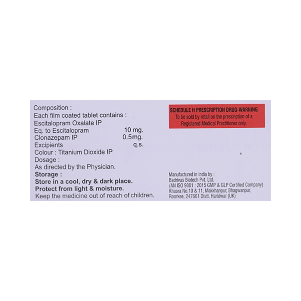 Salt Composition: Clonazepam (0.5mg) + Escitalopram Oxalate (10mg)