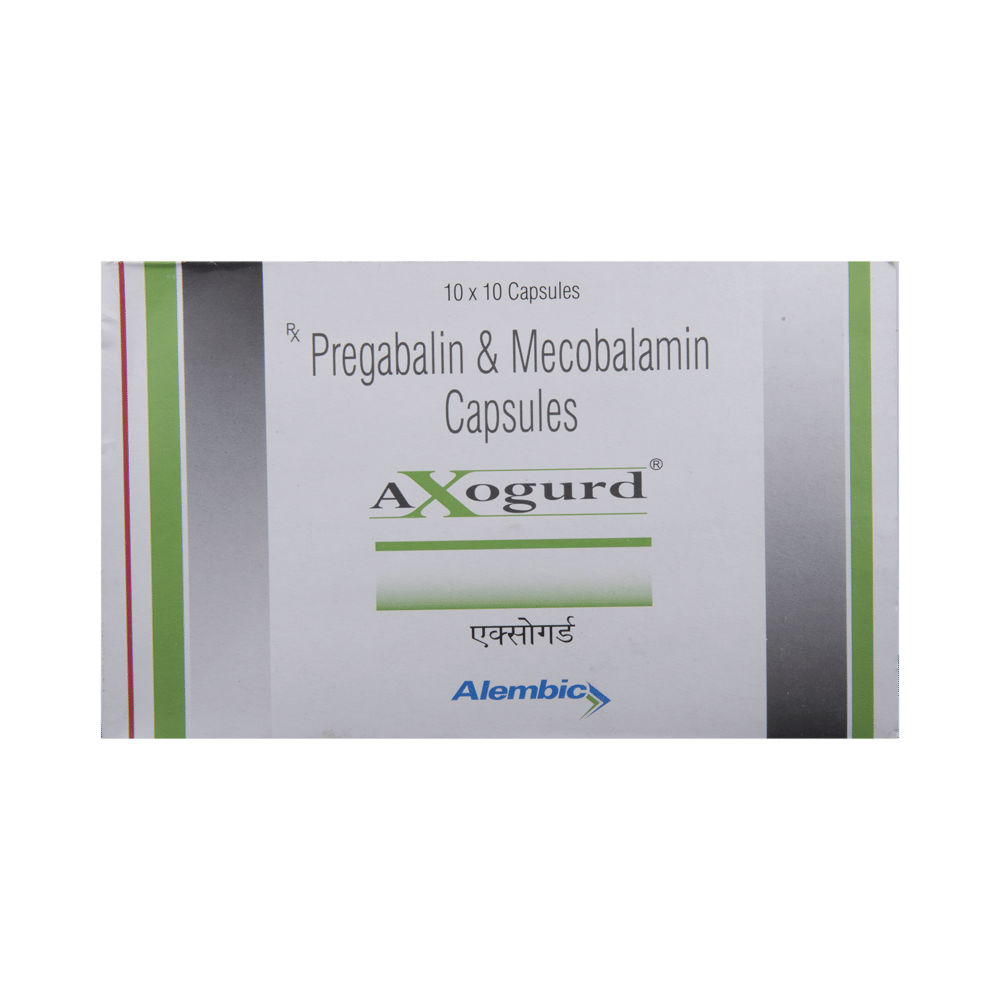 Axogurd Capsule is a prescription medicine used for the treatment of neuropathic pain. It decreases pain by modulating the calcium channel activity of the nerve cells. This medicine also protects nerve fibers and heals damaged nerve cells. Axogurd Capsule may be taken with or without food, preferably at bedtime. It is advised to take it at the same time each day as this helps to maintain a consistent level of medicine in the body. Take this medicine in the dose and duration advised by your doctor. If you miss a dose of this medicine, take it as soon as you remember. Finish the full course of treatment even if you feel better. This medication must not be stopped suddenly without talking to the doctor.Some common side effects of this medicine include nausea, vomiting, diarrhea, constipation, blurred vision, dizziness, and sleepiness. Do not drive or do anything that requires mental focus until you know how this medicine affects you. The side effects are mild and usually improve with time. It may also cause weight gain in some people. Exercise regularly and have a balanced diet to keep your weight in check. Inform your doctor if you develop any unusual changes in mood or behavior, new or worsening depression, or suicidal thoughts.Your doctor should also know about all other medicines you are taking, as many of these may make this medicine less effective or change the way it works. Inform your doctor if you are pregnant, planning pregnancy, or breastfeeding to make sure it is safe for you and the developing baby.