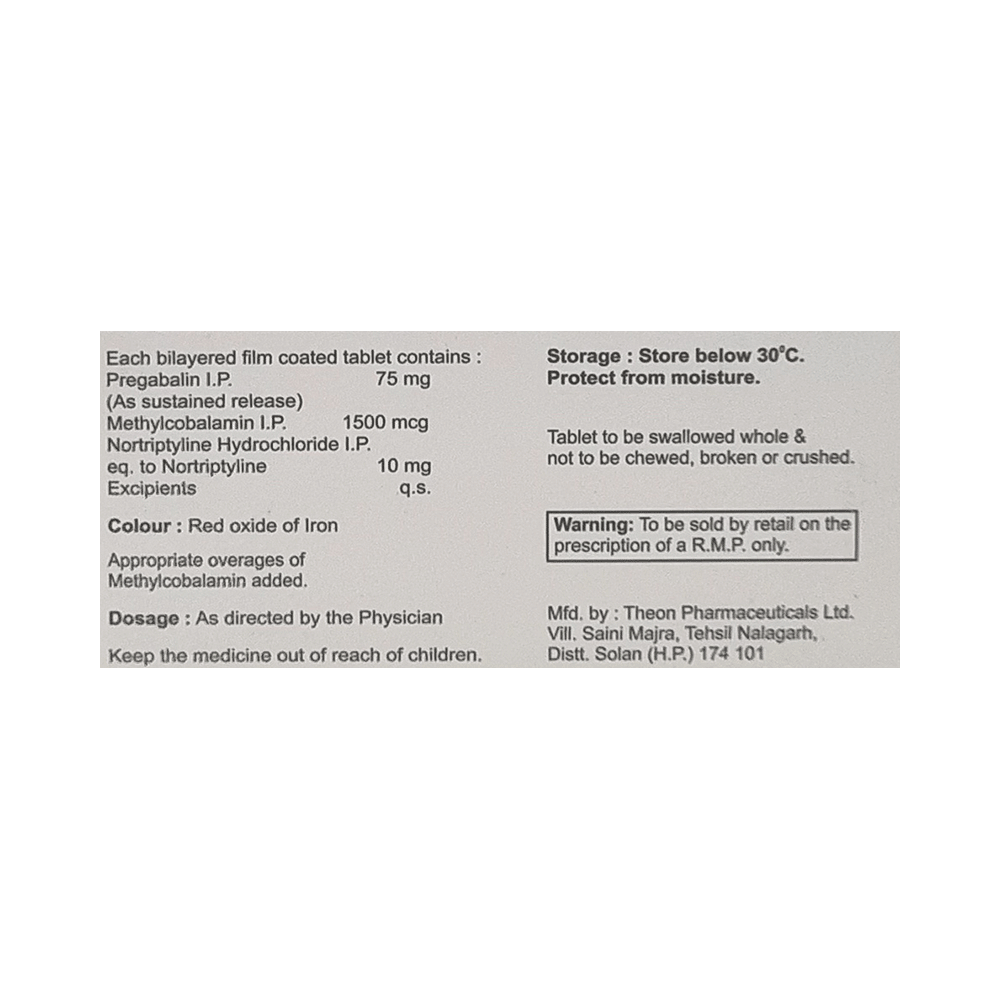 Salt Composition: Pregabalin (75mg) + Nortriptyline (10mg) + Methylcobalamin (1500mcg)