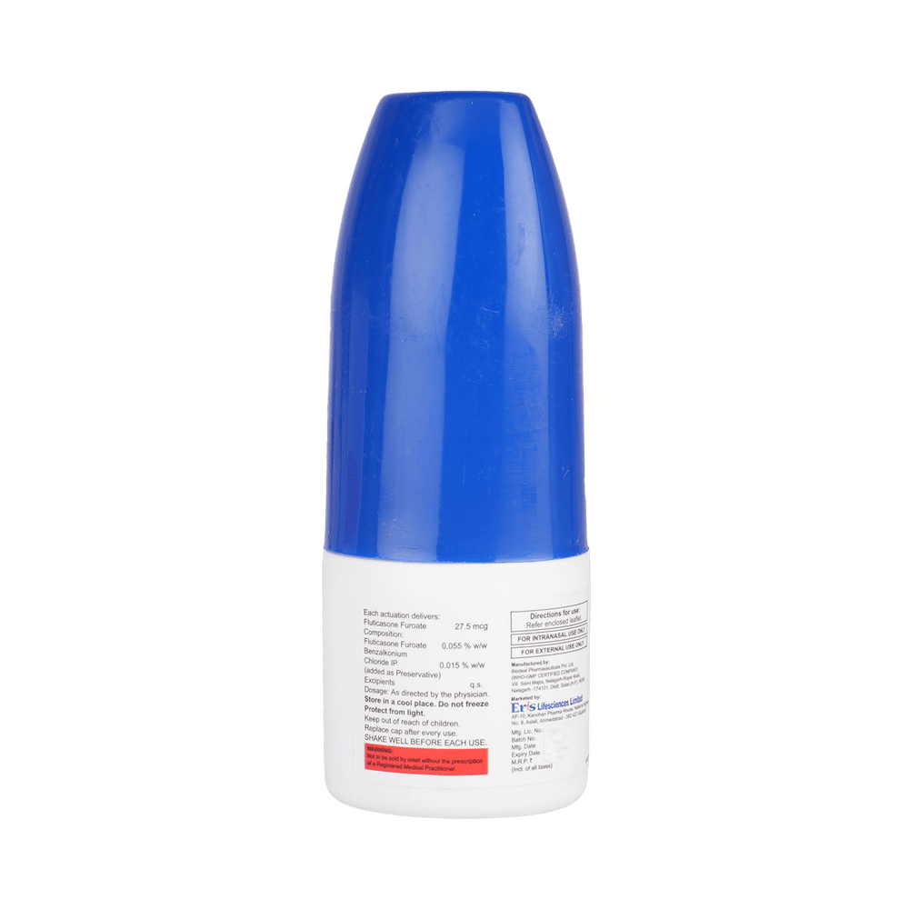 Use this medicine in the dose and duration as advised by your doctor. Check the label for directions before use. Insert the bottle tip into one nostril and close the other nostril. Direct the spray towards the sides of your nostril, away from the cartilage dividing the two sides of your nose. As you spray, breath gently and keep the head upright. Repeat the same process for the other nostrils.