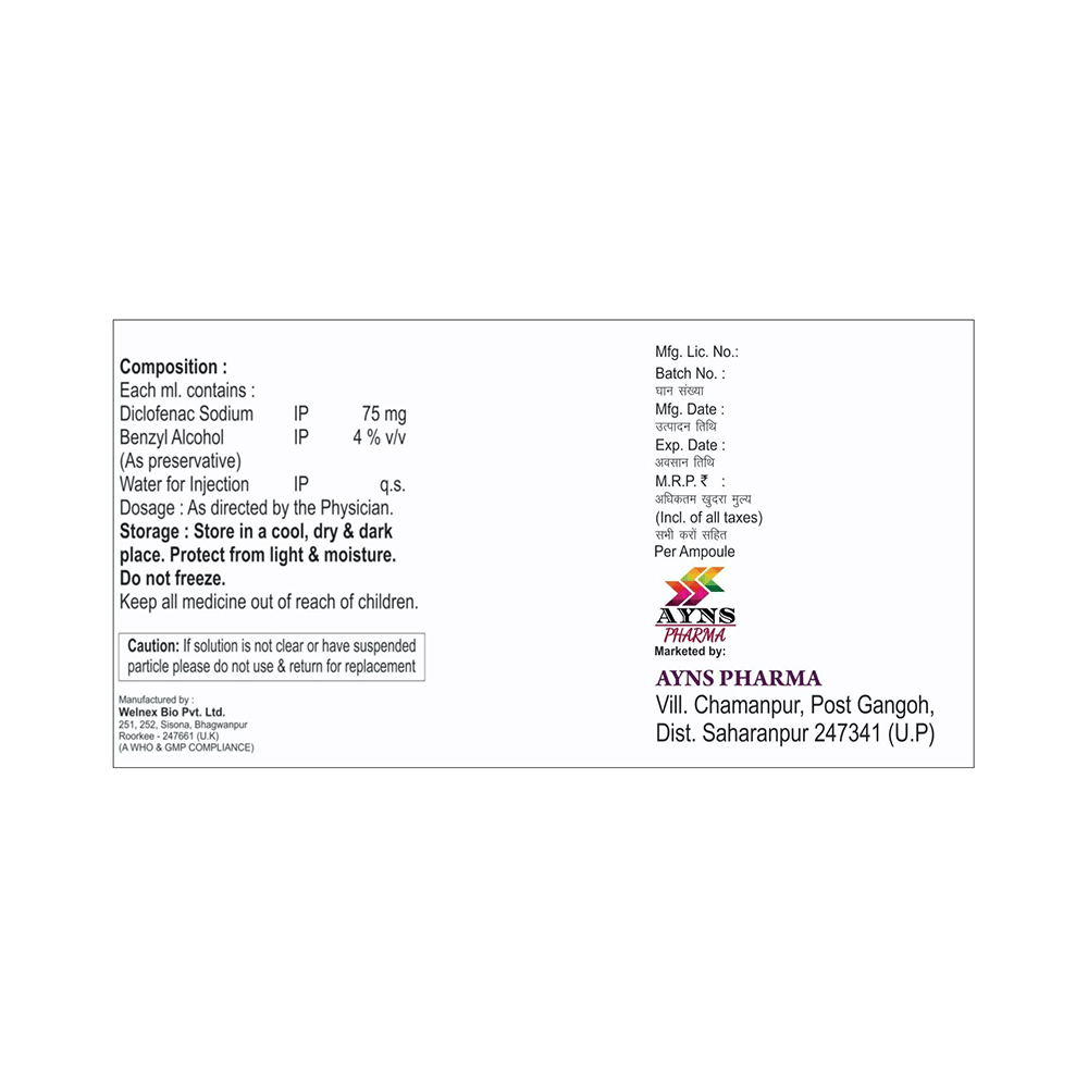 In Pain reliefAynagesic-AQ Injection belongs to a group of medicines called nonsteroidal anti-inflammatory drugs (NSAIDs). It is used for short-term relief of pain, inflammation, and swelling in conditions that affect joints and muscles. It works by blocking chemical messengers in the brain that tell us we have pain. It can help relieve pain in conditions like rheumatoid arthritis and osteoarthritis.Take it as it is prescribed to get the most benefit. Do not take more or longer than needed as that can be dangerous. In general, you should take the lowest dose that works, for the shortest possible time. This will help you to go about your daily activities more easily and have a better, more active, quality of life.