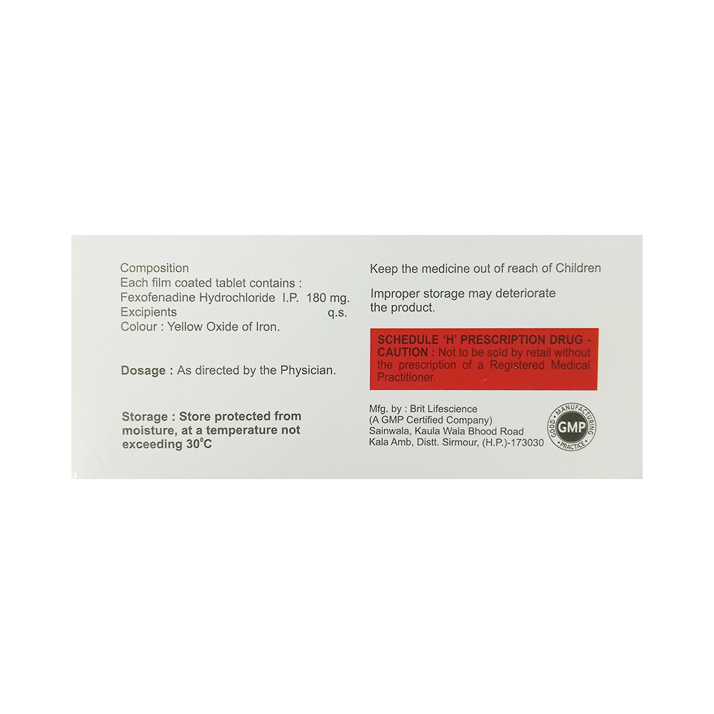 Salt Composition: Fexofenadine (180mg)