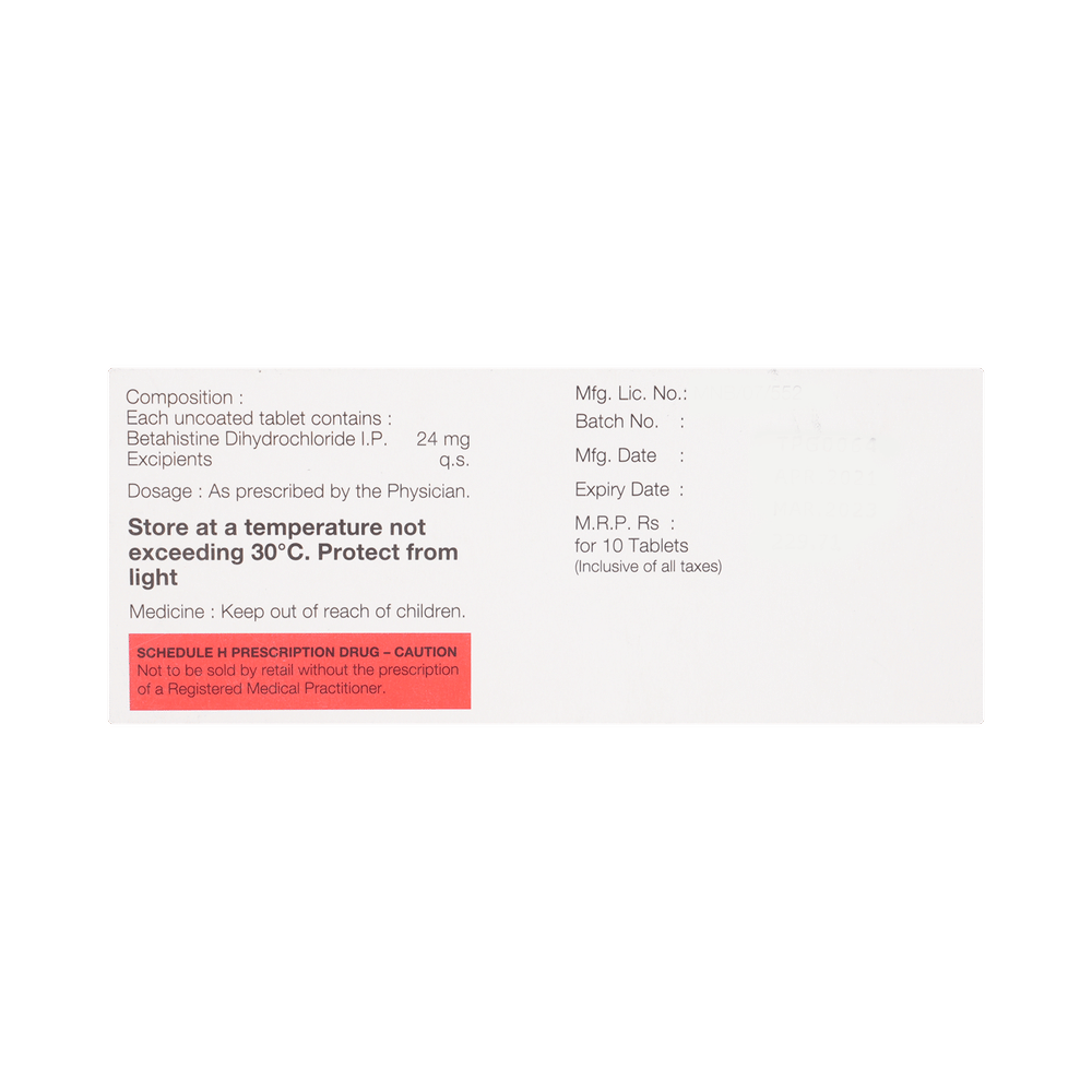 You have been prescribed B-Stil 24 Tablet to relieve vertigo (dizziness), hearing problems and tinnitus (noise in the ear) associated with Ménière's disease.