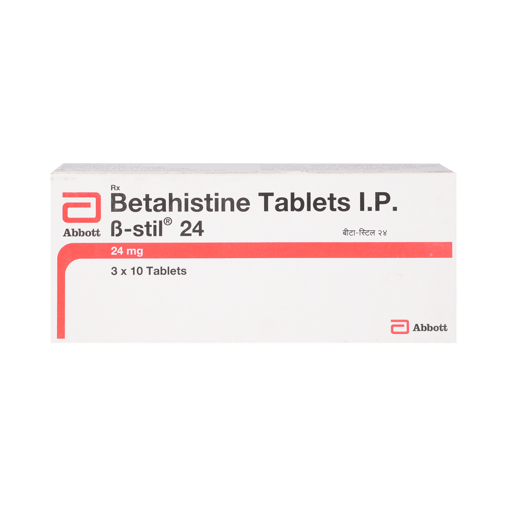 In Treatment of Meniere's diseaseB-Stil 24 Tablet improves blood flow to the inner ear which reduces the pressure of excess fluid there. It is this pressure that is thought to cause the symptoms of nausea, vertigo (dizziness), tinnitus (ringing in your ears), and hearing loss in people who have Ménière’s disease. This medicine makes the symptoms milder and reduces the number of times you get the symptoms. It will be more effective if you take this medicine regularly as prescribed so try not to miss doses. It may take a couple of weeks before you notice any improvements but keep taking it, even if you do feel better until your doctor advises it is safe to stop.