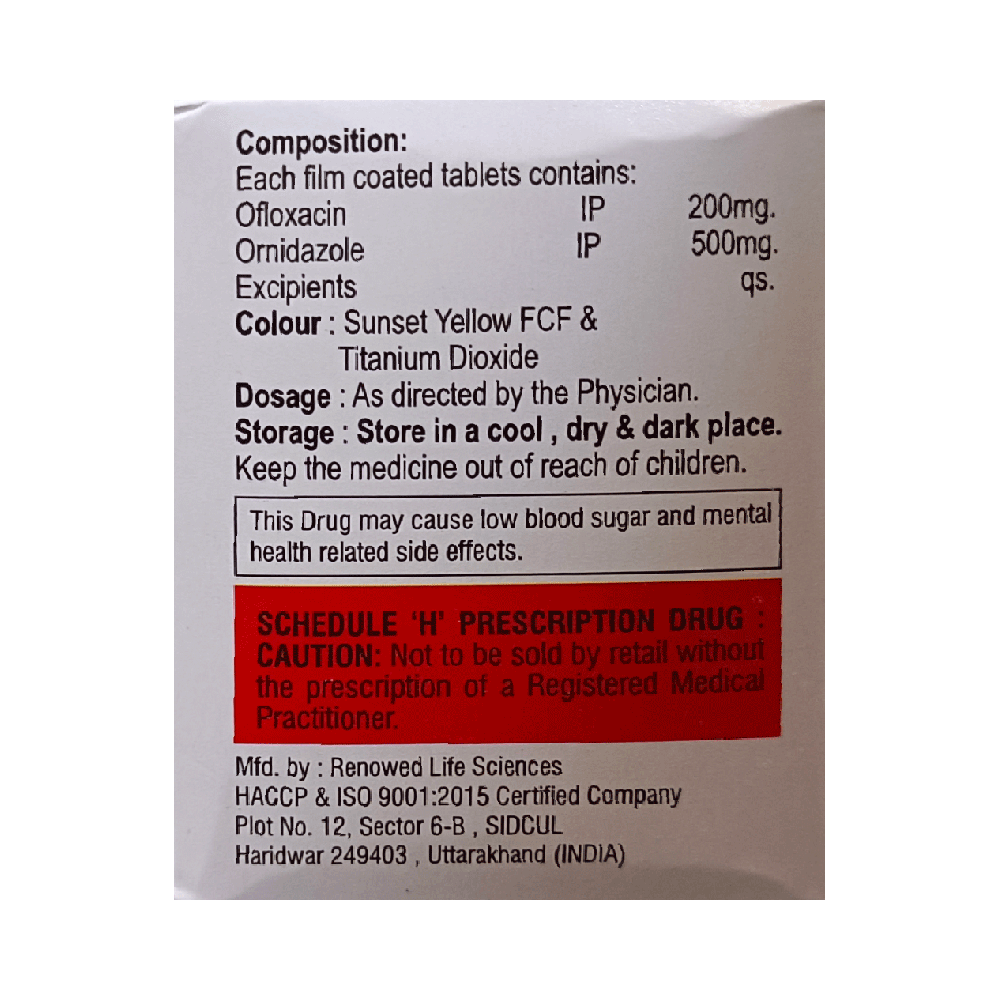 Salt Composition: Ofloxacin (200mg) + Ornidazole (500mg)