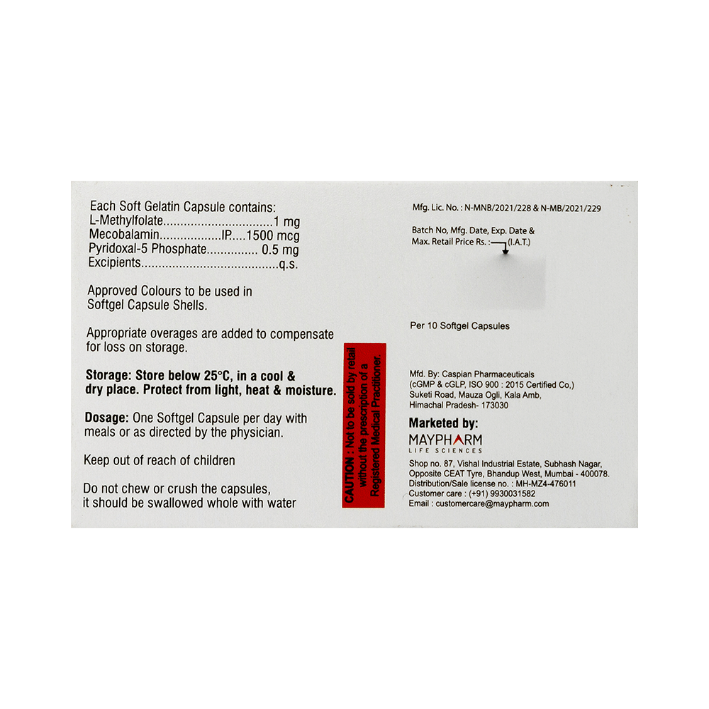 Salt Composition: L-Methyl Folate (1mg) + Methylcobalamin (1500mcg) + Pyridoxal-5-phosphate (0.5mg)
