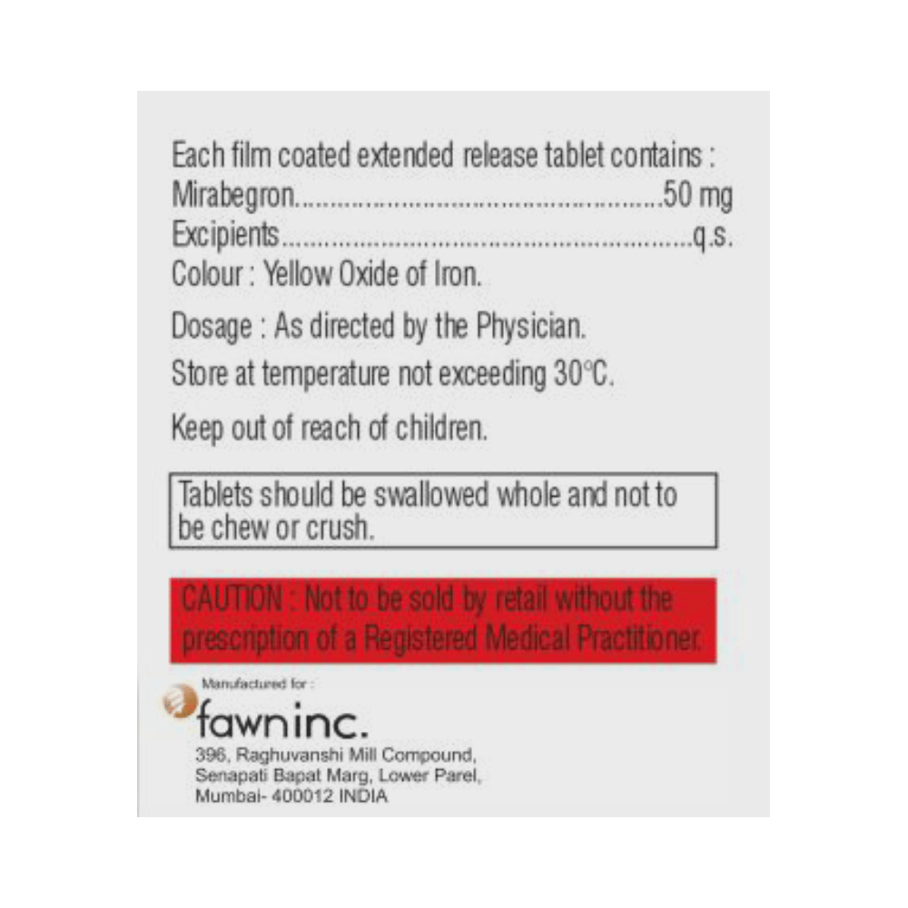 Salt Composition: Mirabegron (50mg)