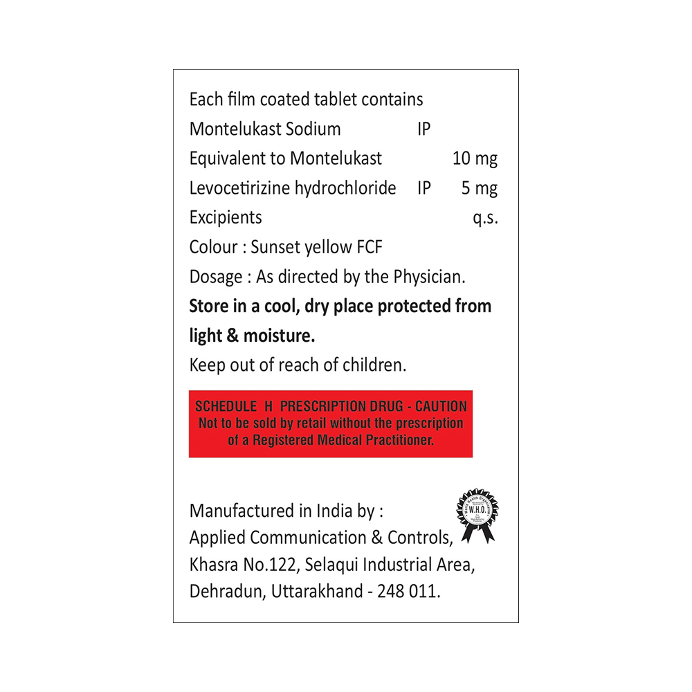 Salt Composition: Levocetirizine (5mg) + Montelukast (10mg)