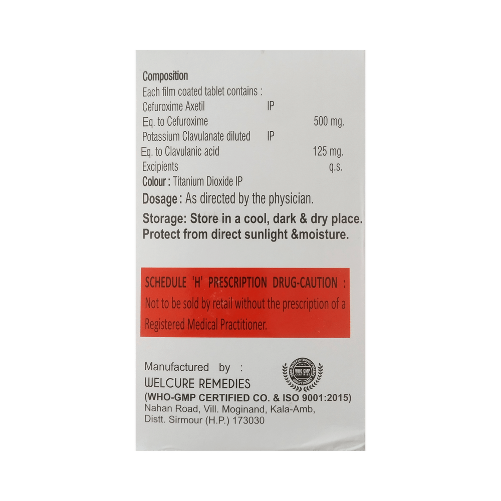 Salt Composition: Cefuroxime (500mg) + Clavulanic Acid (125mg)