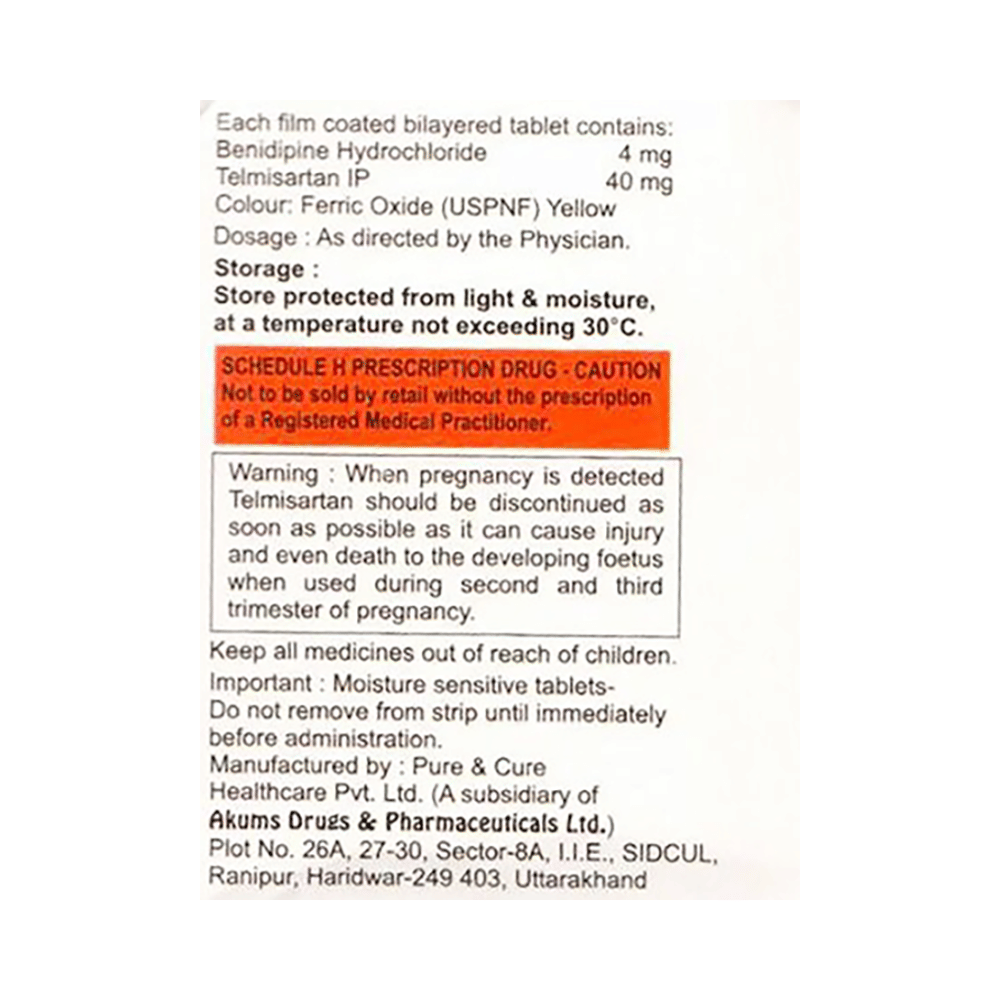 Salt Composition: Benidipine (4mg) + Telmisartan (40mg)