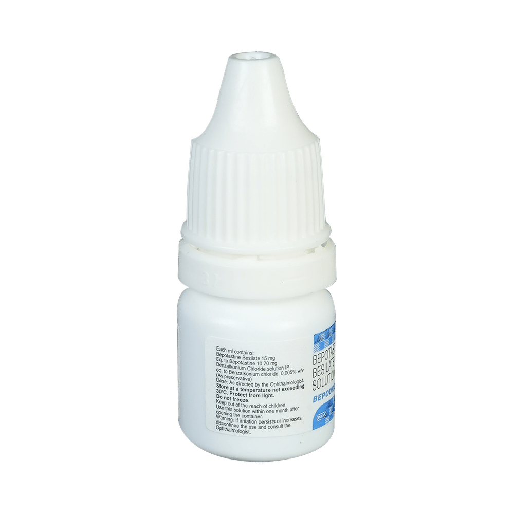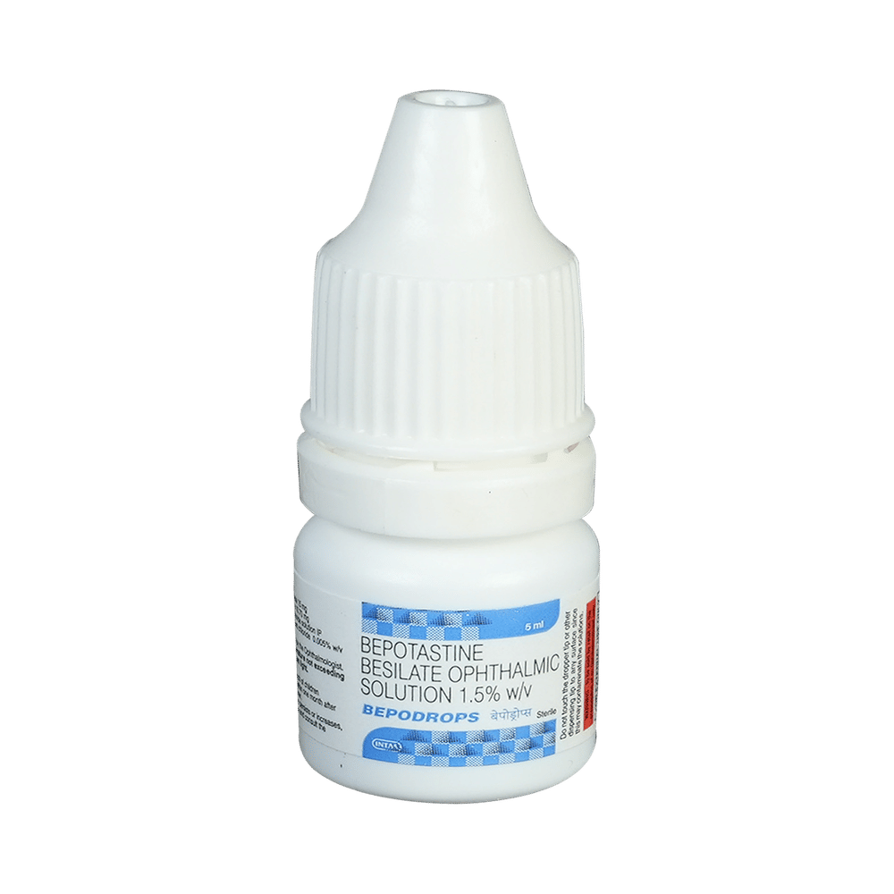 Bepodrops Ophthalmic Solution belongs to a group of medicines called antihistamines. It is used in the treatment of itching associated with inflammation in the eyes (redness and swelling) caused due to allergy. Follow your doctor’s instructions precisely for administering Bepodrops Ophthalmic Solution in the eye. It should be used regularly at evenly spaced time intervals as prescribed by your doctor. Do not skip any doses and finish the full course of treatment even if you feel better. Stopping the medicine too early may lead to returning or worsening.Commonly seen side effects seen with Bepodrops Ophthalmic Solution include eye irritation, headache, and nasopharyngitis. Consult your doctor if these side effects persist or if your condition worsens. It may cause blurring of your vision for a short time just after its use, so do not drive until your vision is clear.