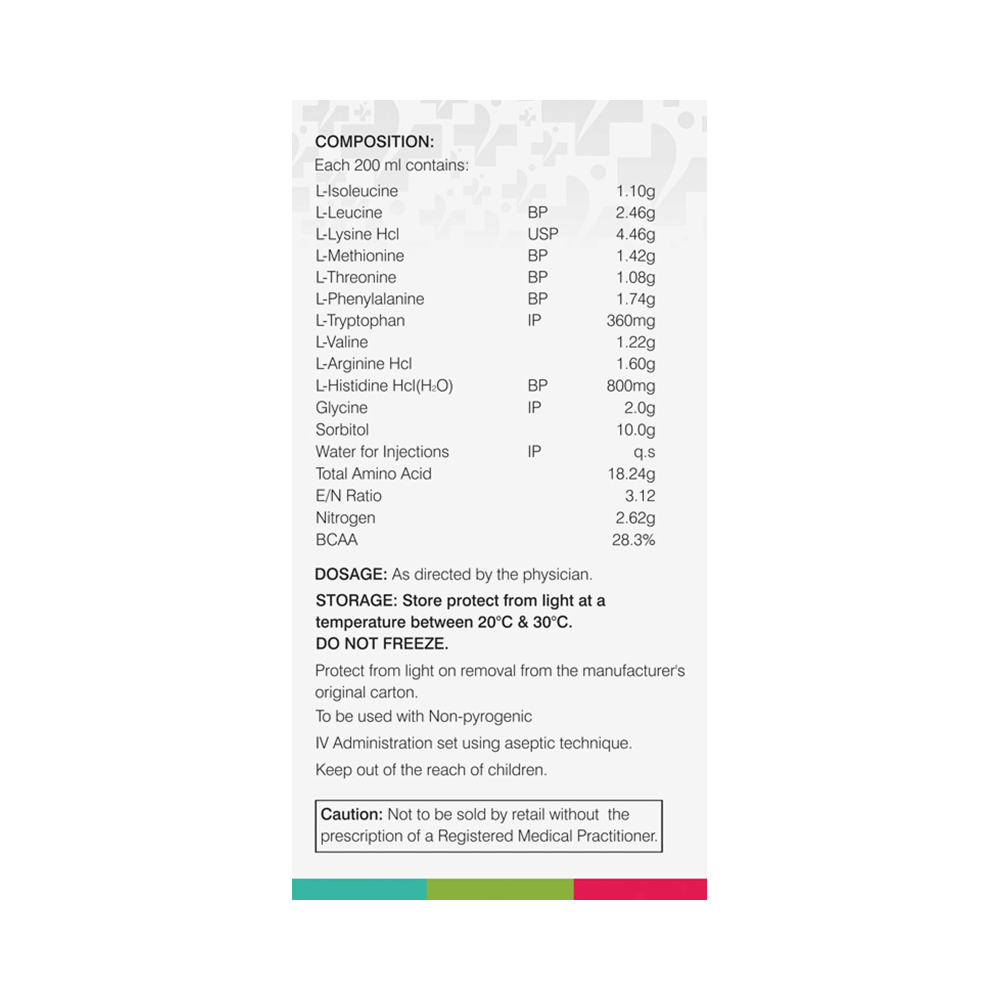 Bestamin-SE 200 Infusion are organic compounds that are chained together to form proteins. It is used to treat nutritional deficiencies. It promotes nitrogen-balancing in the body, also replenishes the protein reserve of the body in extensive burns or protein-calorie malnutrition. Bestamin-SE 200 Infusion is given under the supervision of a healthcare professional. Take it in a dose and duration as advised by the doctor. The full course of treatment should be completed as per prescription.This medicine may cause injection site inflammation (redness, swelling, and pain), acute folic acid deficiency, fever, and increased sweating as its side effects. It is better to consult with your doctor if any of the side effects bother you.This medicine may also cause metabolic and liver disorders, that is why it is important to undergo regular clinical evaluations and laboratory tests (blood and urine) to know the effects and side effects of this medicine on your organs. Before initiating this treatment, you must consult your doctor if you have any health conditions or your ongoing medications. Pregnant and breastfeeding women should only take this medicine if advised by the doctor.