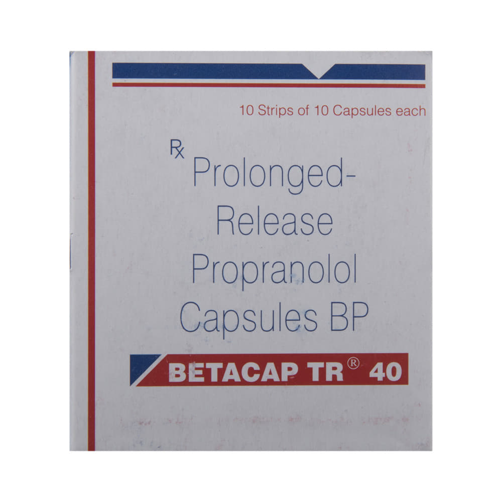 Betacap TR 40 Capsule is a medicine used to prevent angina (chest pain) and migraine, and manage pheochromocytoma (a rare adrenal gland tumor). It works by slowing the heart rate and relaxing blood vessels, helping to reduce strain on the heart and improve blood flow. Take Betacap TR 40 Capsule in the dose and duration prescribed by your doctor. It will depend on what you are being treated for and how you respond to the medicine. You should always take it as prescribed by the doctor. It can be taken with or without food. You should keep taking it even if you feel well, as you are still getting the benefits. If you stop taking it suddenly, your condition may worsen.The most common side effects of Betacap TR 40 Capsule include tiredness, dizziness, weakness, cold fingers or toes, and stomach pain. You may also experience nausea, vomiting, and diarrhea. Talk to your doctor if the side effects bother you or do not go away. Most side effects are short-lived and improve as your body gets used to the medicine.You should not use Betacap TR 40 Capsule if you have asthma, very slow or uneven heartbeats, or a serious heart condition, including heart failure. Talk to your doctor before taking it if you have kidney or liver problems or chronic obstructive pulmonary disease (COPD). In terms of lifestyle, alcohol may affect the way this medicine works and should be avoided. You should not drive if this medicine makes you feel dizzy. Ask your doctor whether it is safe to take this medicine if you are pregnant or breastfeeding.