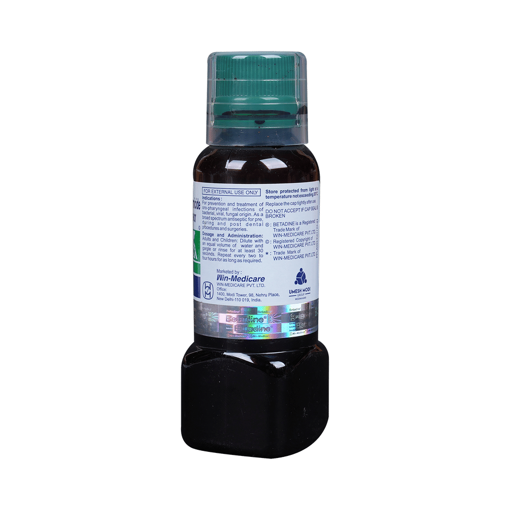 In Treatment of Sore throatSore throat refers to pain and discomfort in the throat that is usually seen in bacterial or viral infections. Betadine Germicide Gargle 2% Mint is generally very safe, works quite quickly and will reduce the pain and discomfort that might be caused by sore throat. It kills the microorganisms causing the infection in the throat and makes you feel better. This helps to soothe the irritated throat and speeds up the recovery process. You may also drink warm water/drinks such as ginger tea, avoid cold foods and take a steam bath for additional relief.In Treatment of Mouth infectionWhenever there is an overgrowth of microorganisms in our mouth, that are otherwise normally present, it can lead to unpleasant symptoms suggestive of mouth infection. These symptoms include bad breath, swollen gums, unpleasant taste changes, sensitivity of teeth to hot or cold food/liquid etc. Betadine Germicide Gargle 2% Mint kills and prevents growth of these bacteria, thereby relieving these symptoms. This helps in maintaining good oral hygiene.Poor oral hygiene can be extremely embarrassing and can affect your social life. This medicine helps restore your self confidence and makes it easier for you to go about your daily activities. Continue using it as advised by the doctor to get maximum benefit.In Treatment and prevention of Wound infectionBetadine Germicide Gargle 2% Mint is a versatile antiseptic that is used for the treatment and prevention of infection. Betadine Germicide Gargle 2% Mint kills and prevents the growth of infection-causing microbes, thereby preventing abrasions, cuts, and wounds, or any break in the skin from getting infected. The antiseptic effect is caused due to the slow release of iodine. Keep the affected area clean and use the medicine as prescribed by your doctor.show moreshow less