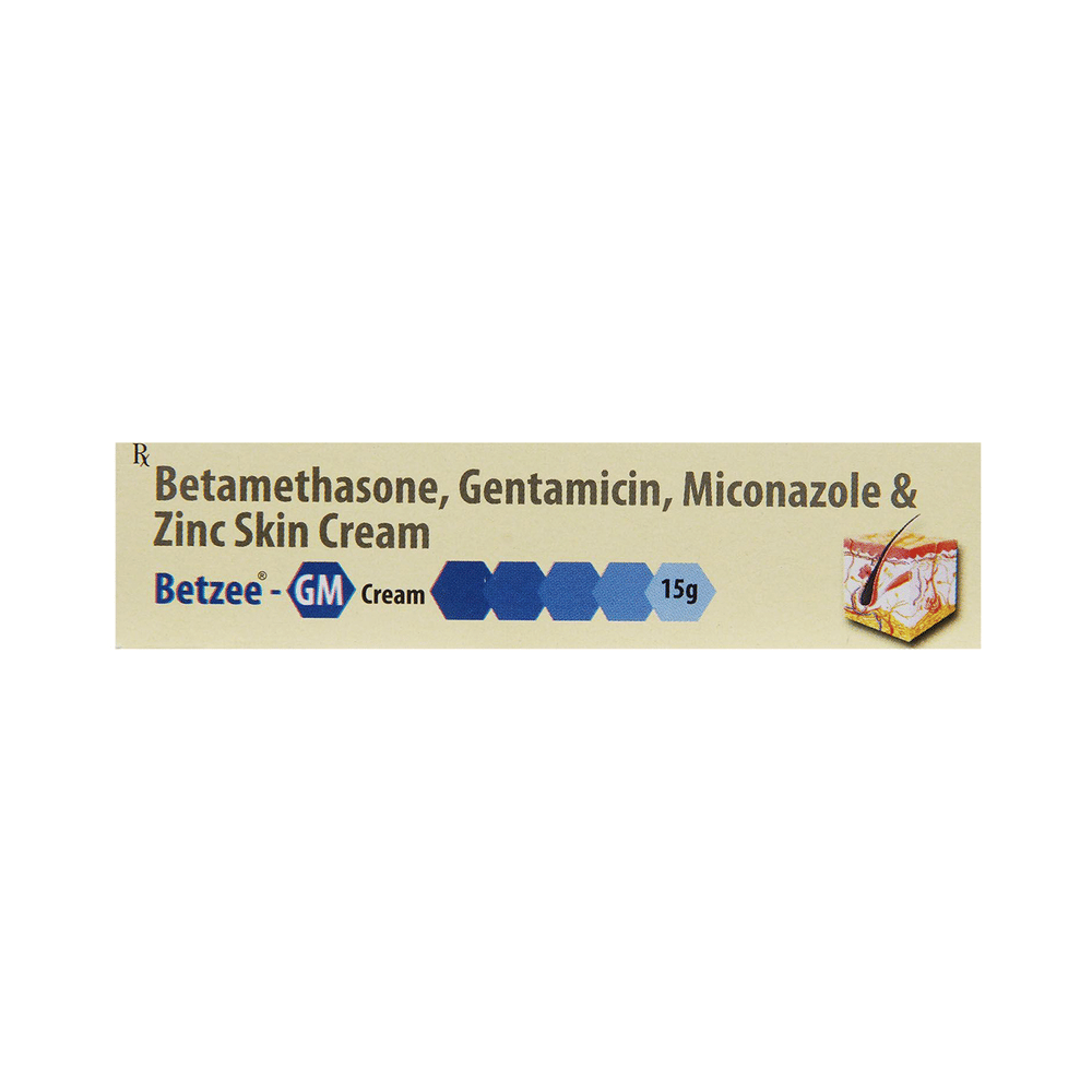 Betzee - GM Cream is a combination of three medicines: Betamethasone, Gentamicin and Miconazole, which treats skin infections. Betamethasone is a steroid which blocks the production of certain chemical messengers (prostaglandins) that make the skin red, swollen and itchy. Gentamicin is an antibiotic which stops the growth of bacteria while Miconazole is an antifungal which stops the growth of fungi on the skin. Together, they treat your skin infection effectively.