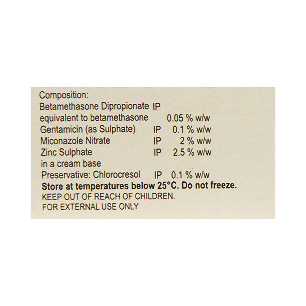 Salt Composition: Betamethasone (0.05% w/w) + Gentamicin (0.1% w/w) + Miconazole (2% w/w)