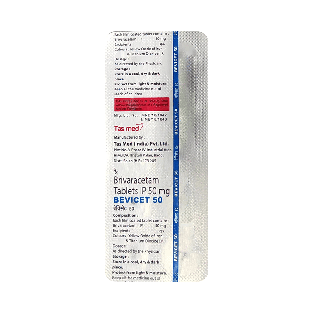 Bevicet 50mg Tablet is an antiepileptic medication. It works by attaching itself to specific sites (SV2A) on the surfaces of nerve cells. This suppresses the abnormal activity of the nerve cells in the brain and prevents the spread of electrical signals that cause seizures.