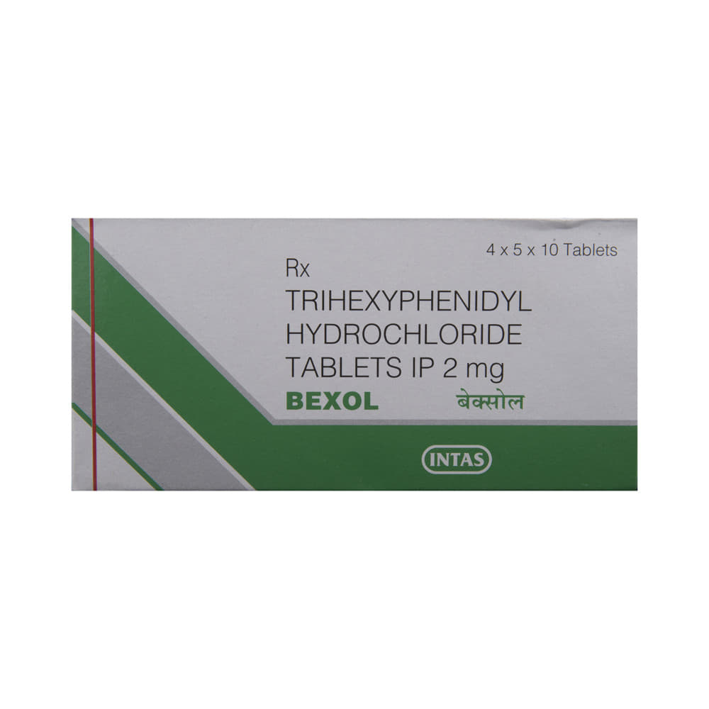 In Treatment of Parkinson's diseaseParkinson’s disease (PD) is a disorder of the central nervous system. It makes the muscles stiff which causes difficulties in standing and walking. PD also causes tremors and loss of balance. Bexol Tablet helps to treat the symptoms of Parkinson's Disease. It relaxes the stiff muscles and helps in easy movement without losing balance. Bexol Tablet is also used to treat side effects like abnormal movements caused by antipsychotic drugs. It is advisable not to stop this medicine without consulting your doctor. This is because a sudden stoppage can cause symptoms of Parkinson's disease to return. You can see that the drug is working if you are able to do your daily activities more easily and have a more active and better quality of life. In Treatment of Drug induced abnormal movementsBexol Tablet is also used to treat side effects like abnormal movements caused by antipsychotic drugs. It helps restore normal body posture as well as control over muscle movements in the body. This will enable you to lead a normal life and improve your ability to carry out daily activities.show moreshow less